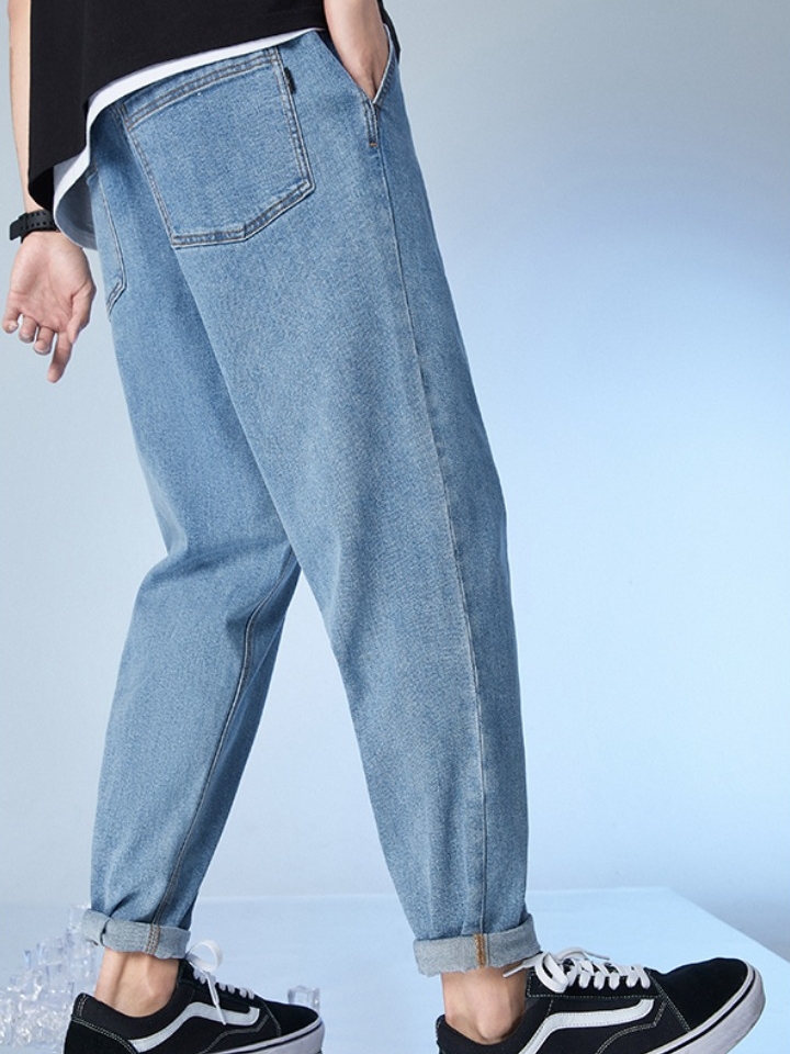 非常复古风格的牛仔裤,整体水洗做旧工艺,上身酷帅又有型。