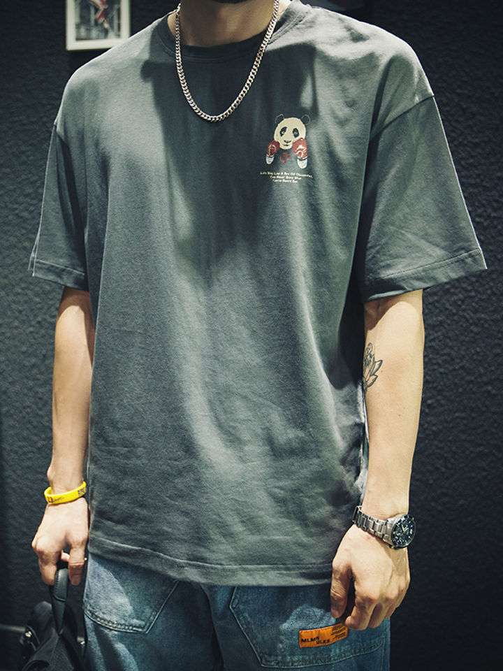 这款t恤是简约的风格,宽松的版型,时尚百搭,胸前的字母印花,很有个性,搭配牛仔裤或者短裤都很好看。