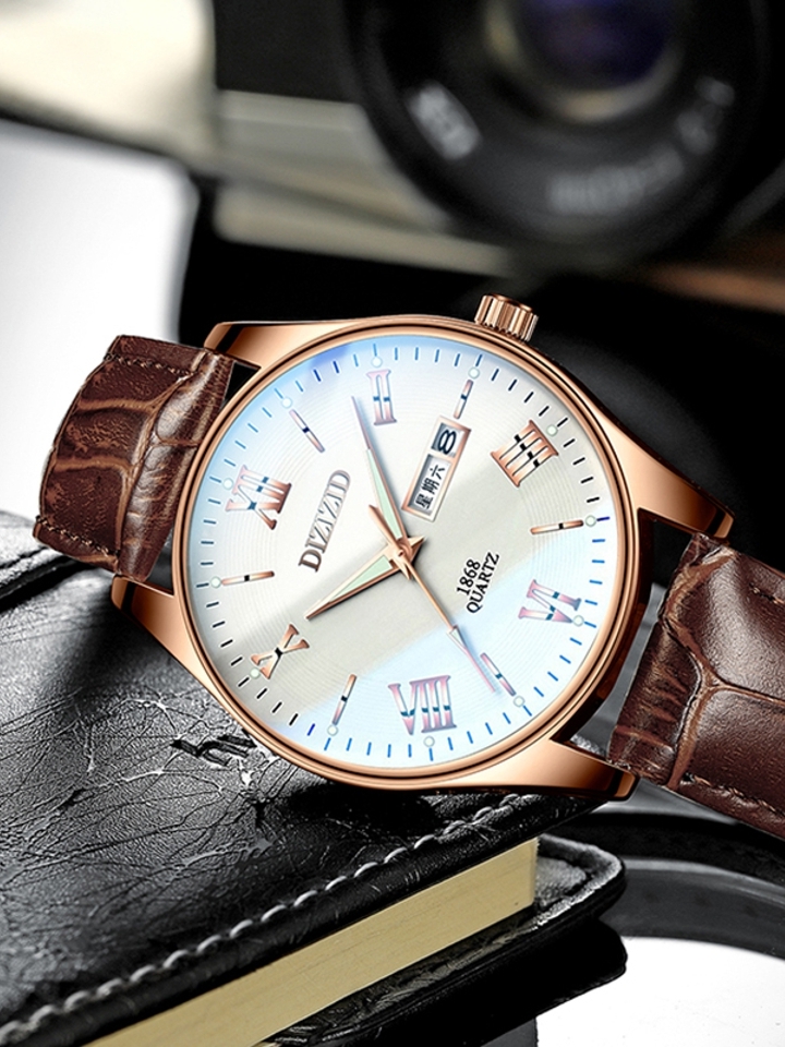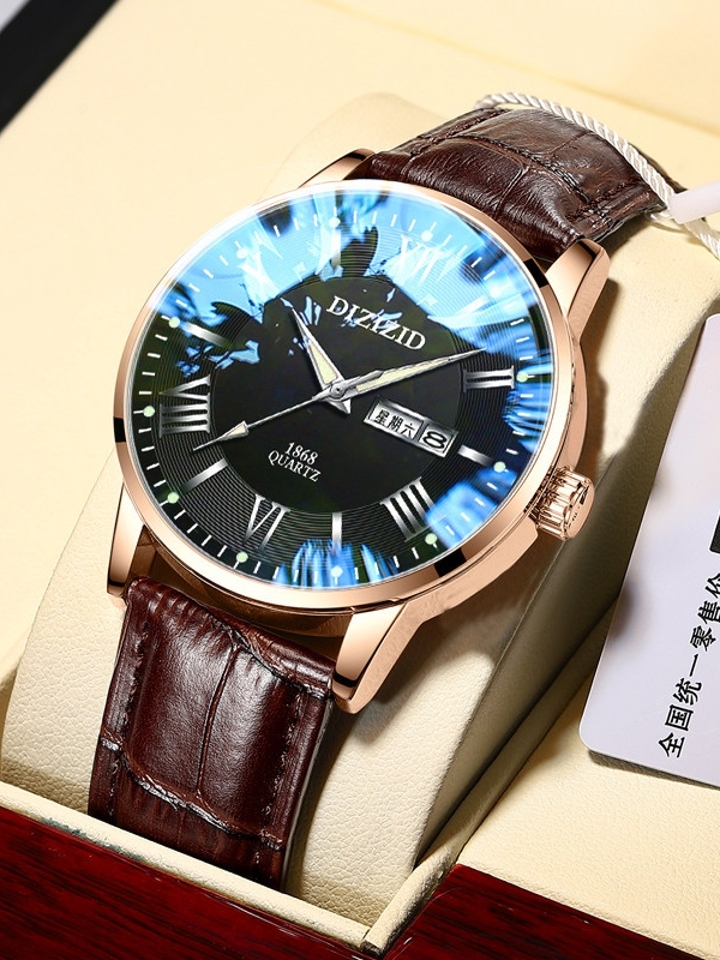 腕表是男士搭配的一大亮点之一,有时候也是男士个人品味的体现。圆形大表盘,时尚超薄 石英机芯 采用渐变色的羊皮带舒适透气更亲肌肤。