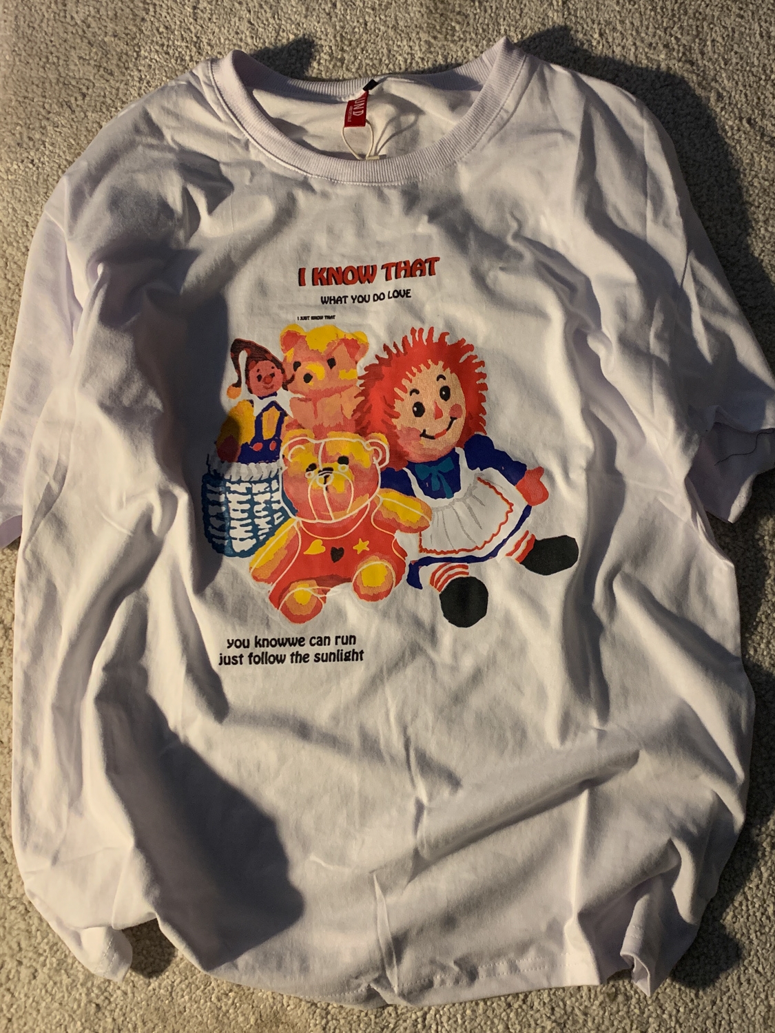 印花短袖T恤复古可爱,宽松版型藏肉显瘦。