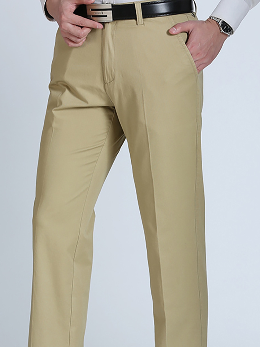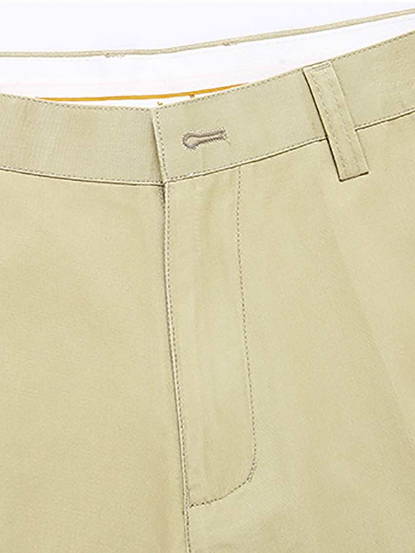 休闲宽松的直筒裤,卡其色百搭又耐看,结合面料上身舒适好穿,腰间做了压褶的设计,丰富裤子的挺括感,挽起裤腿来,利落又帅气。