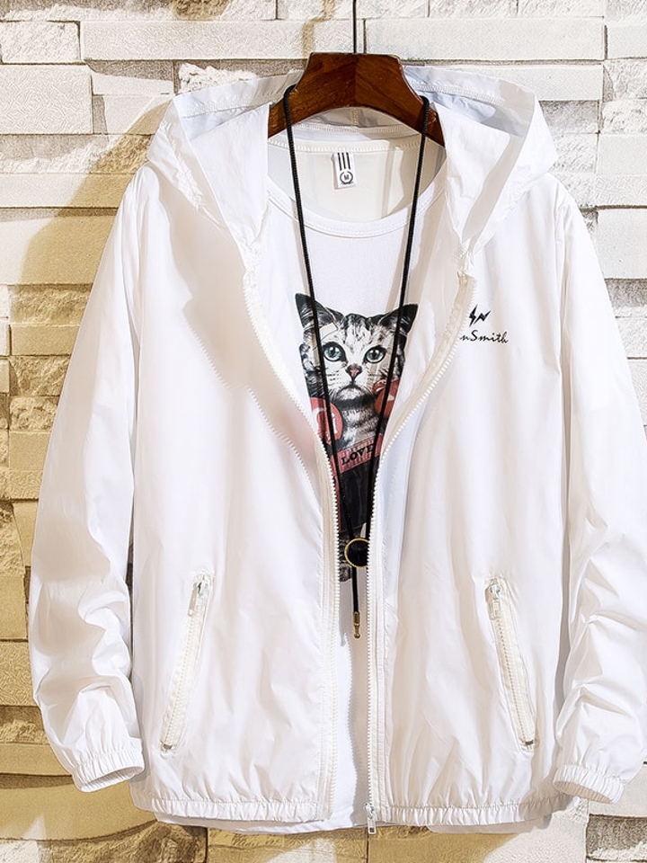 夏季必备的薄款防晒衫,宽松的版型不挑人穿着,时尚简约版型,个性印花休闲且随意,精致的走线做工,顺畅的拉链,让您穿着舒适。