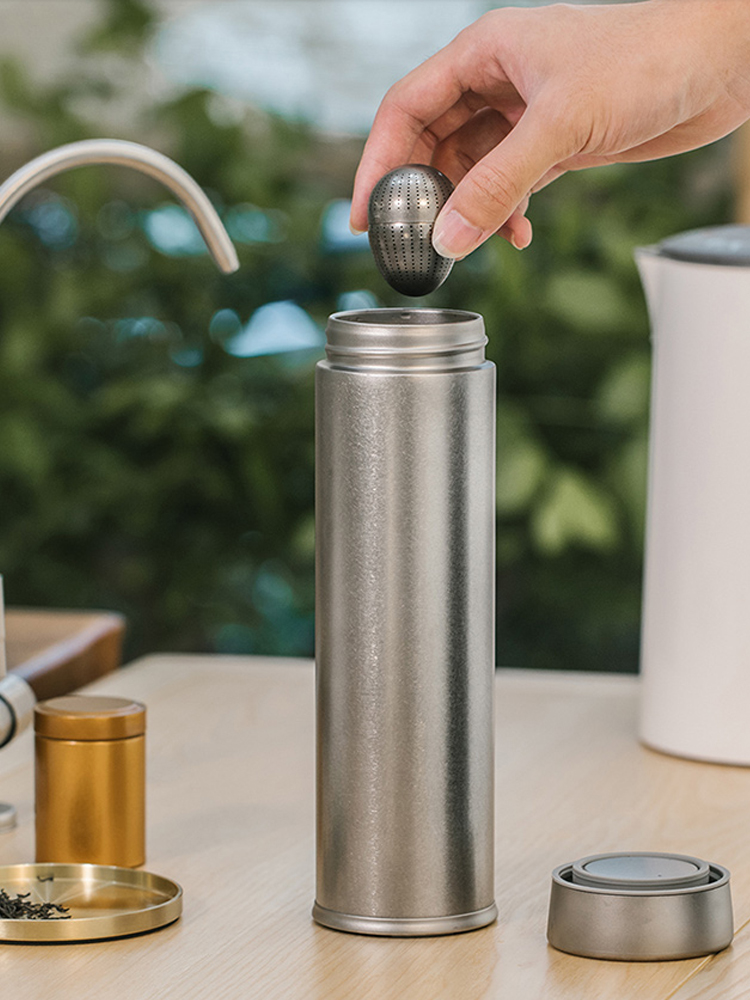 这款水杯采用了纯钛材料制作,纯钛性质稳定,不易于物质产生反应,这个性质能让其长期存放碳酸饮料或茶水中,其表面细密的氧化层能让饮料或者茶水味道更加纯正,而且纯钛材料不会被人体吸收,使用起来也更加安全放心。