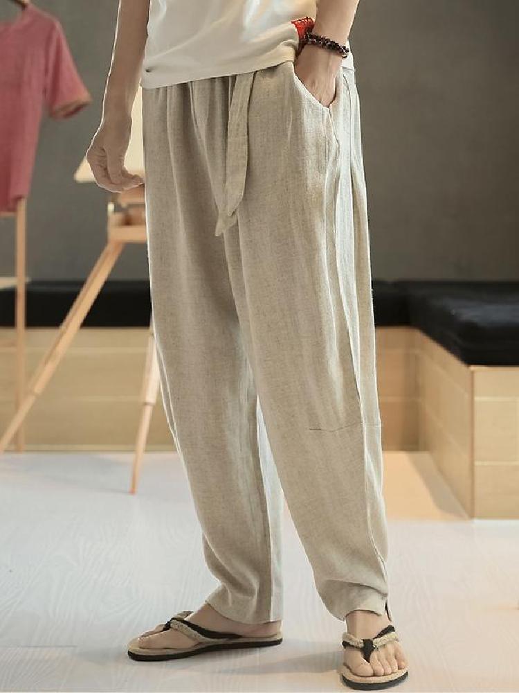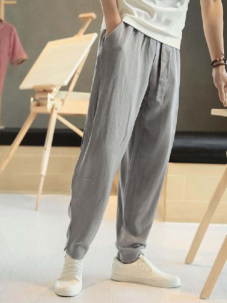 松紧带裤腰搭配抽绳设计,复古木扣装饰,精致复古,带来浓郁的中国风气息;精致的斜插口袋,美观顺手,方便携带贴身物品;采用优质高弹棉质面料,宽松直筒版型,上身舒适无束缚。