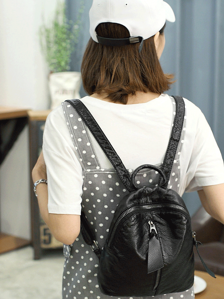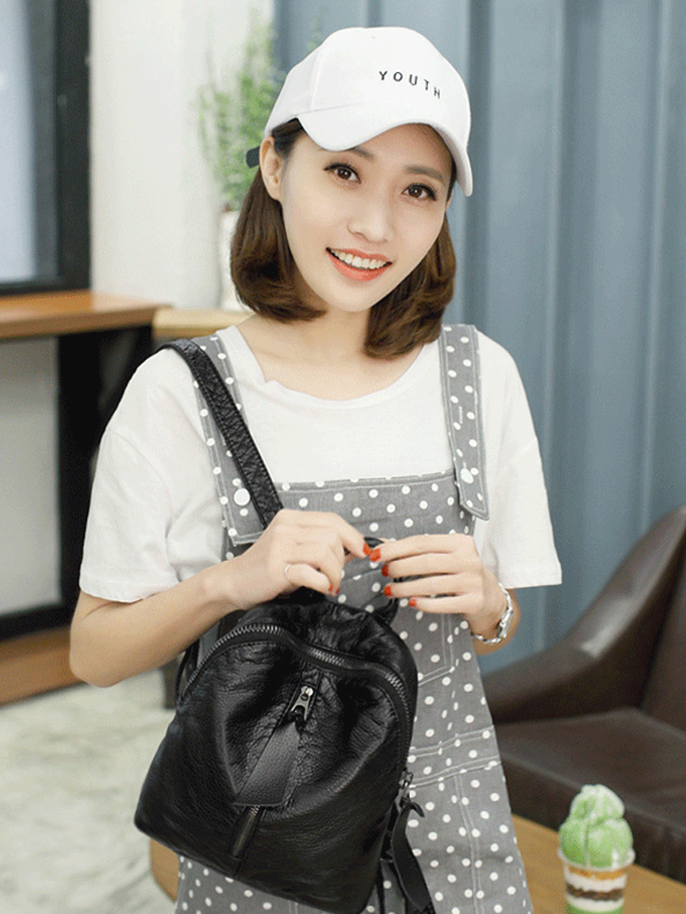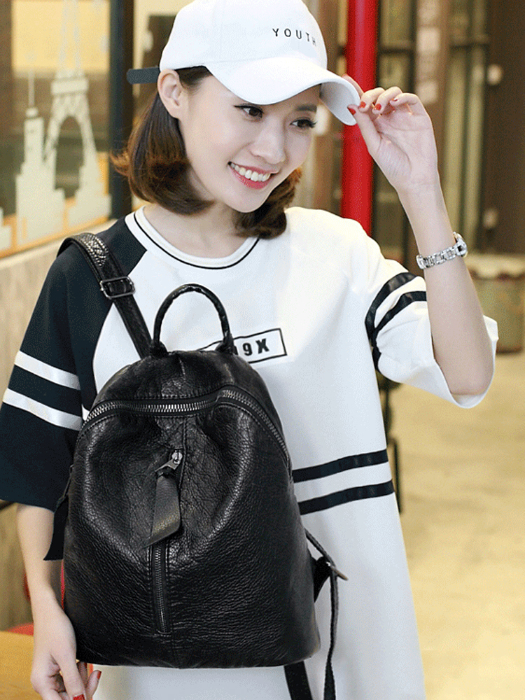 复古软皮双肩包,采用PU材质,质感细腻,纹路清晰。加上别致的拉链装饰,增添潮流色彩,尽显别致不俗,轻松出行。