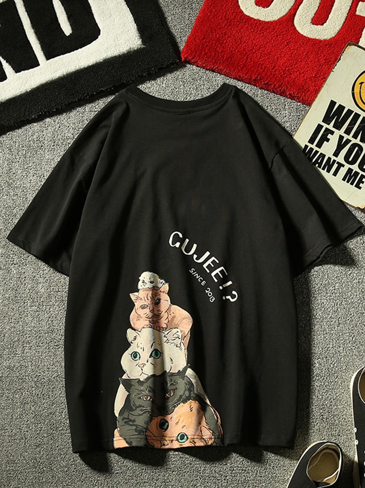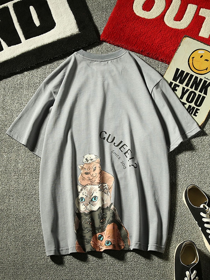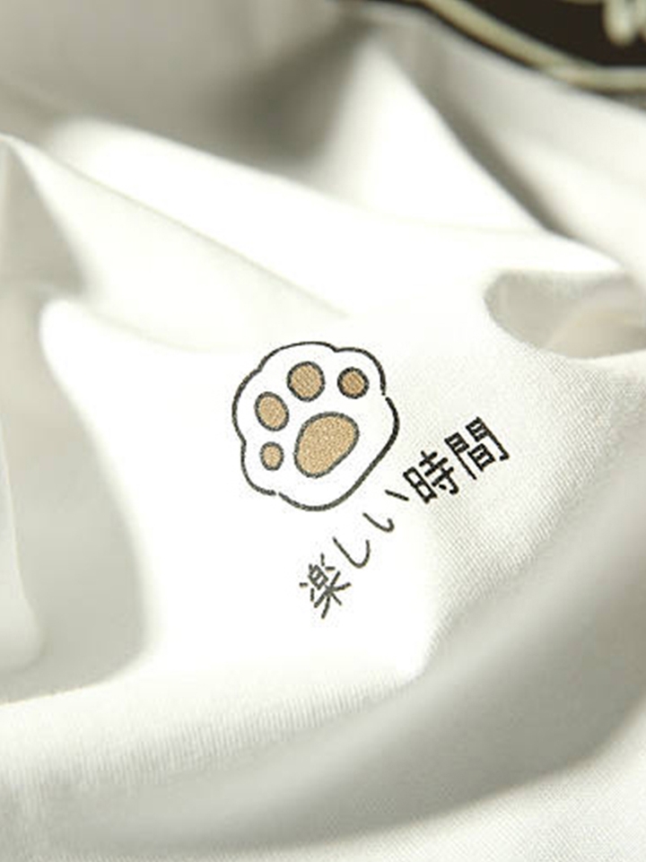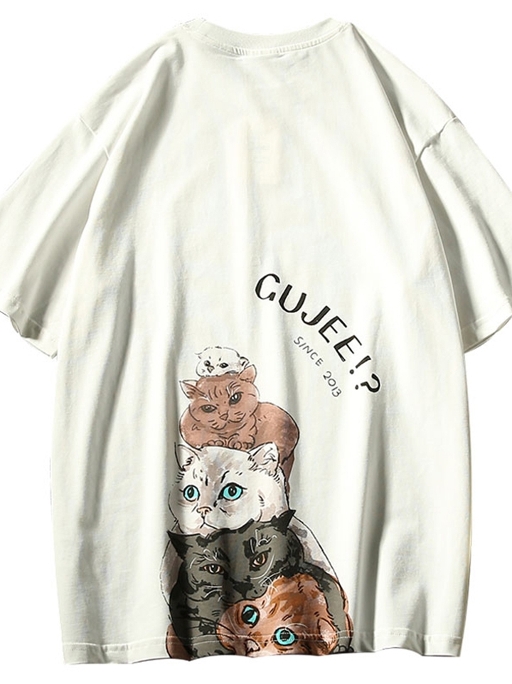 后背以卡通猫咪印花装饰,传递出青春活力感。经典的圆领设计,休闲又百搭。