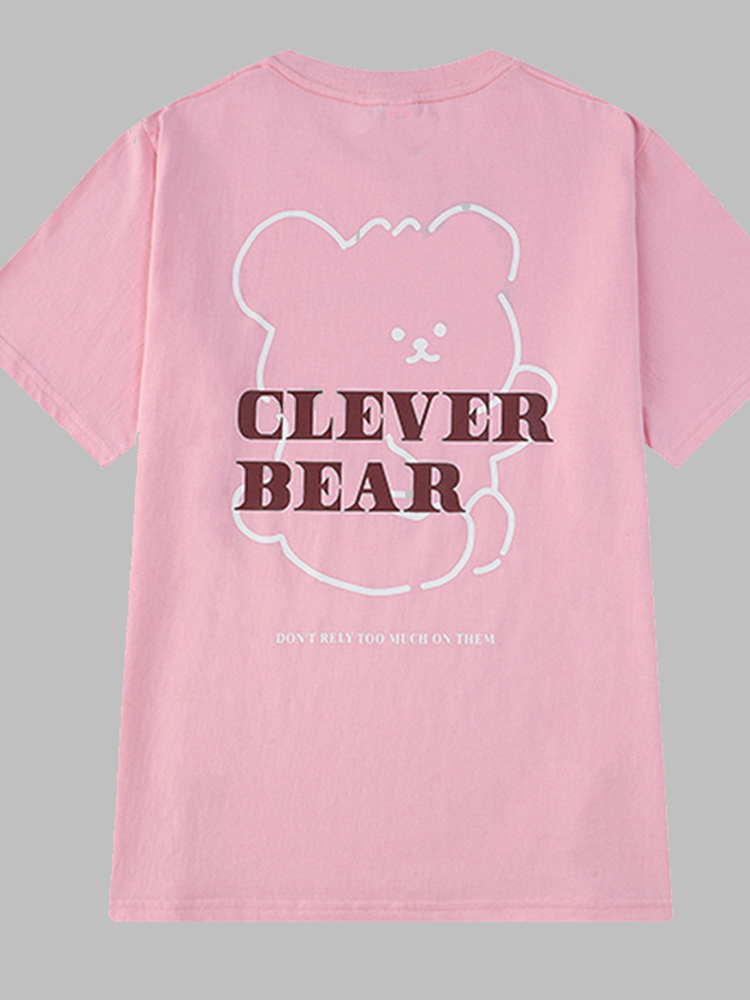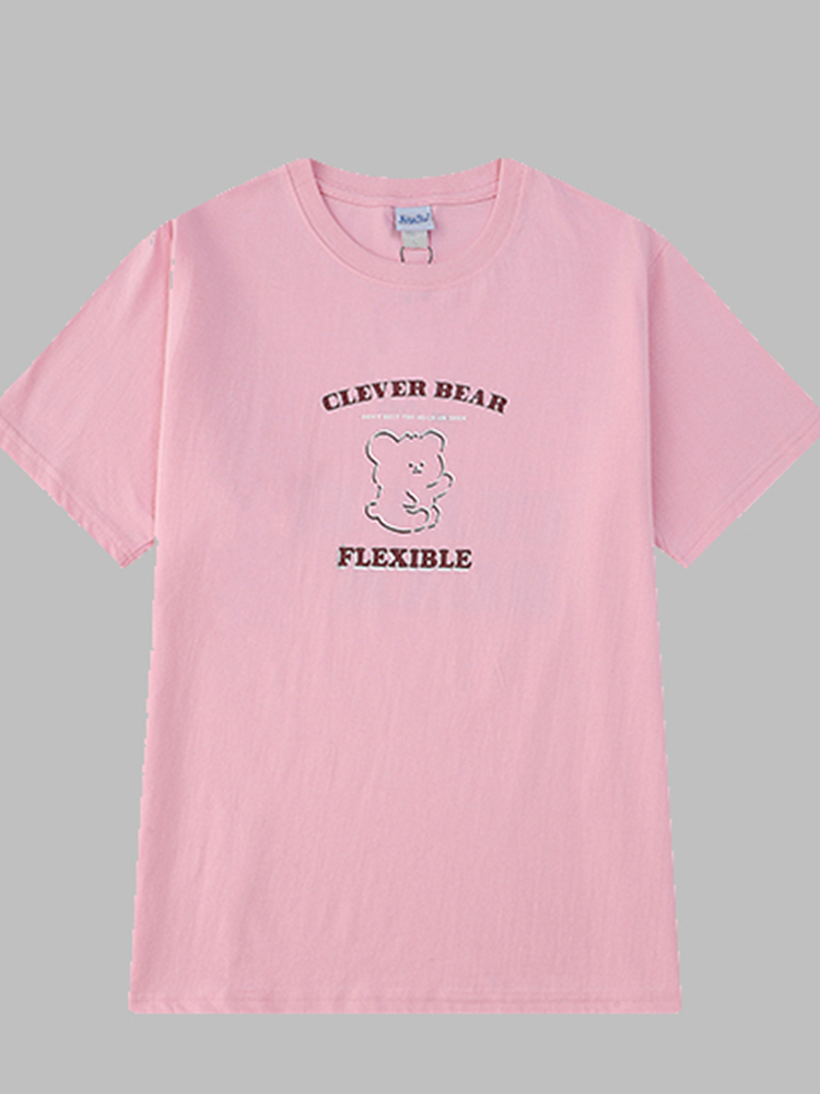 胸前有着可爱的卡通橡皮小熊的印花设计,简简单单的线条勾勒出了童趣感。基础的纯色色调,百搭又耐看。