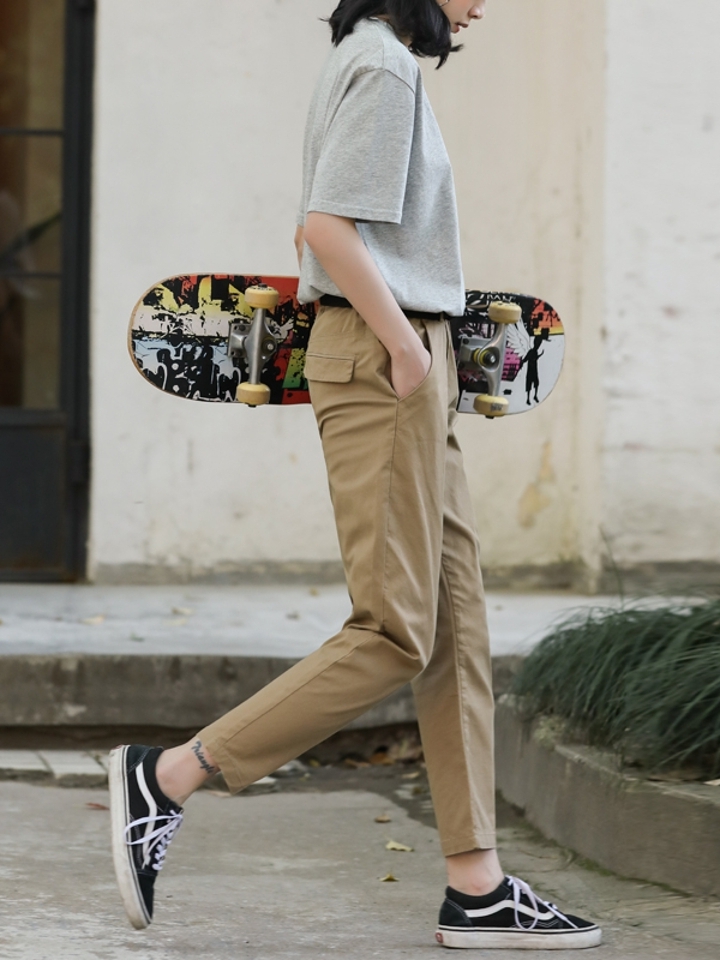 高腰直筒设计,拉长腿部线条,更适合每一个身材穿着;休闲显瘦,时尚青春百搭,你也可以做潇洒自在的女神。