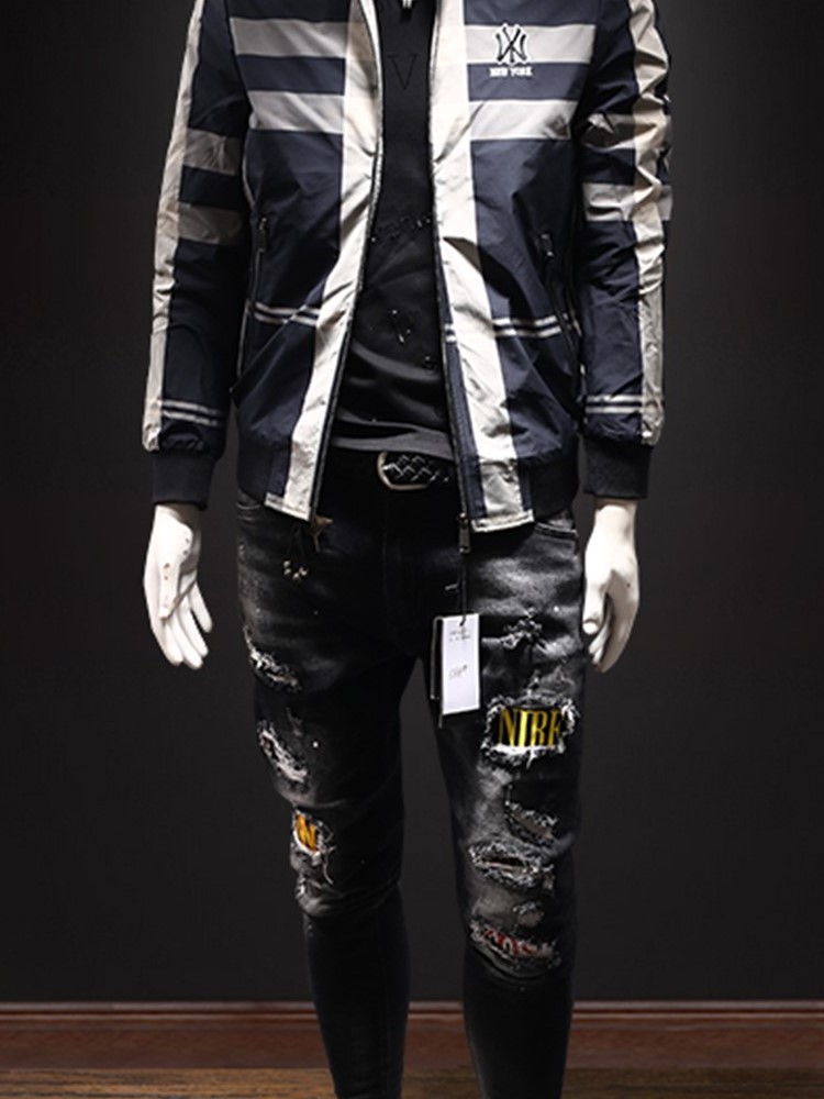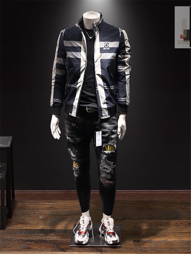 夹克采用了经典的棒球领设计,穿着舒适有型,衣身的印花图案,充满了时尚的气息,衣身的印花图案,更显时尚潮流,修身的版型,穿着舒适有型。