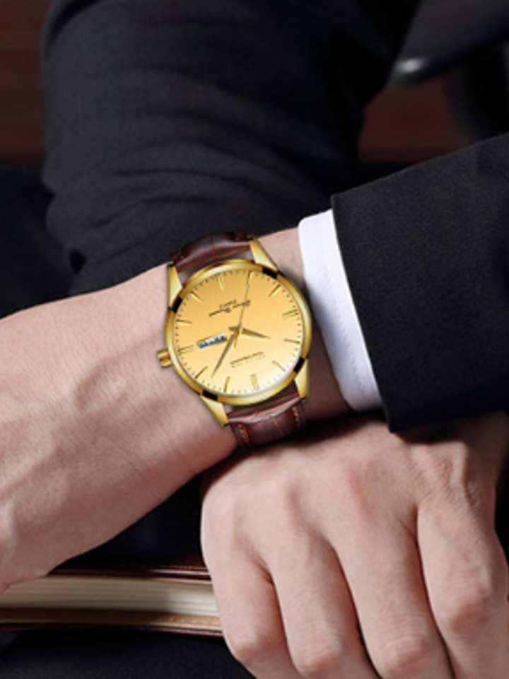 简洁大方的表盘设计,低调又奢华,采用的自动机械机芯,走时精准,让人家见证时间的流逝和你的人格魅力。