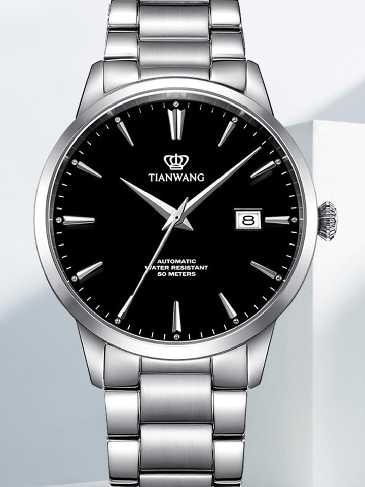 人工合成的蓝宝石玻璃表镜不仅更能凸显身份,而且更透亮哦。50米生活防水以及机械机芯保证了它更持久耐用。