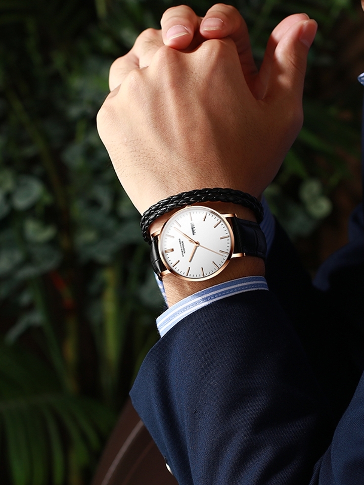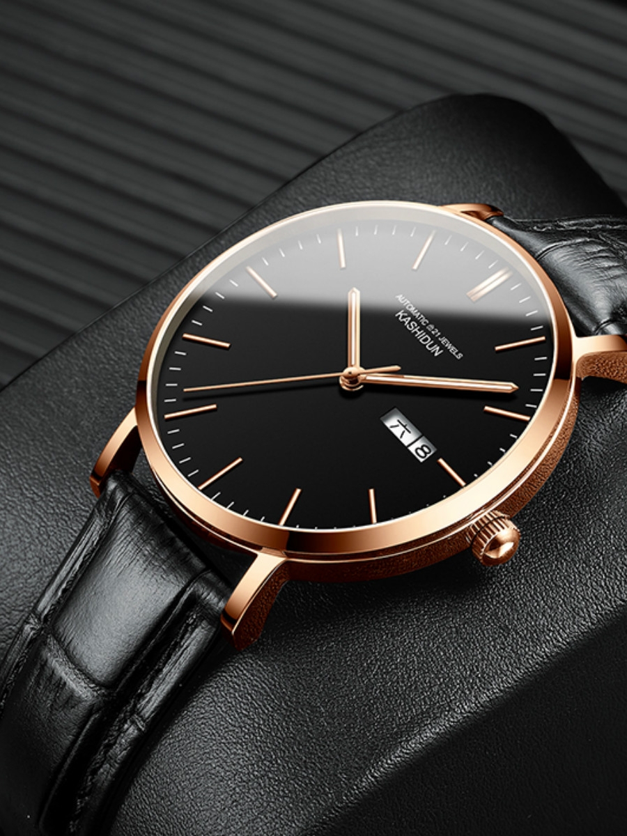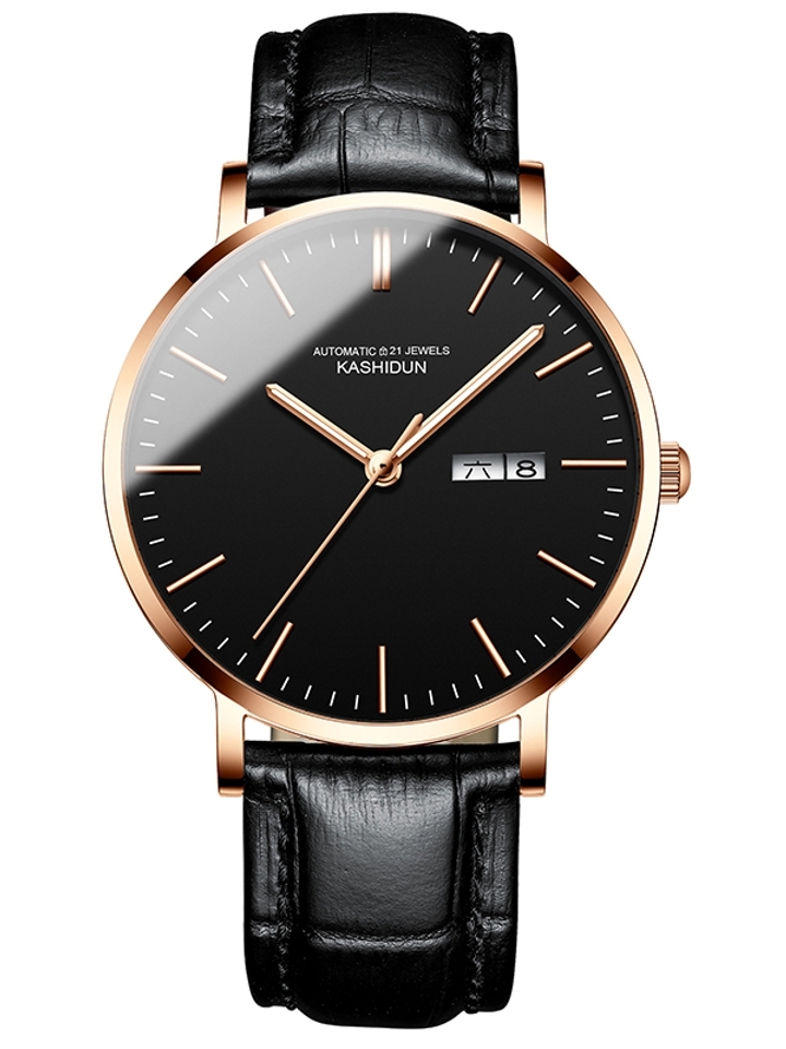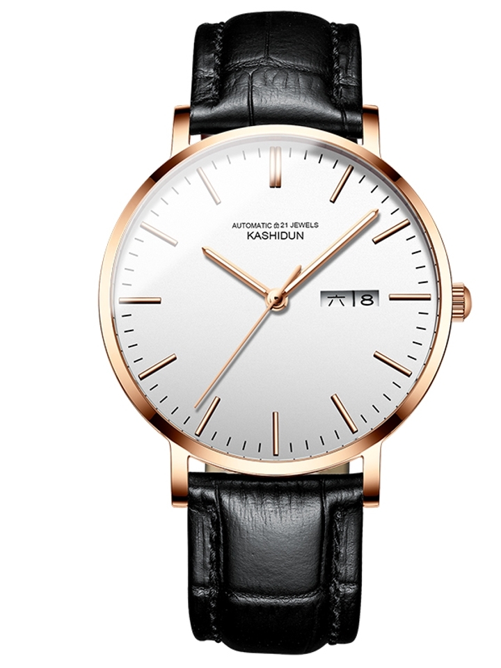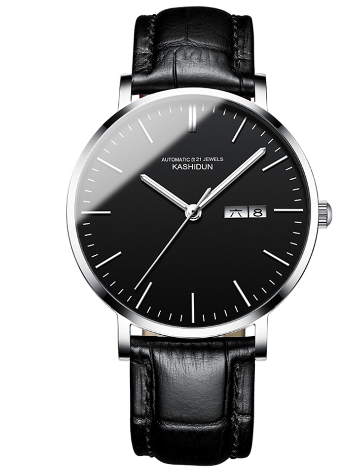 全自动机械商务手表,简约圆形表盘简洁大气,个性独立小秒针指示,个性时尚。两针还是有夜光指示,黑暗光线中也能读取时间,简便实用。表盘背部的镂空设计,可以清晰的看见机械运转,分秒嘀嗒个性时尚。