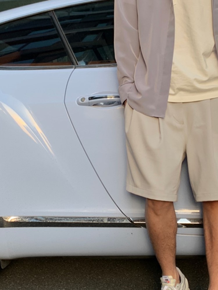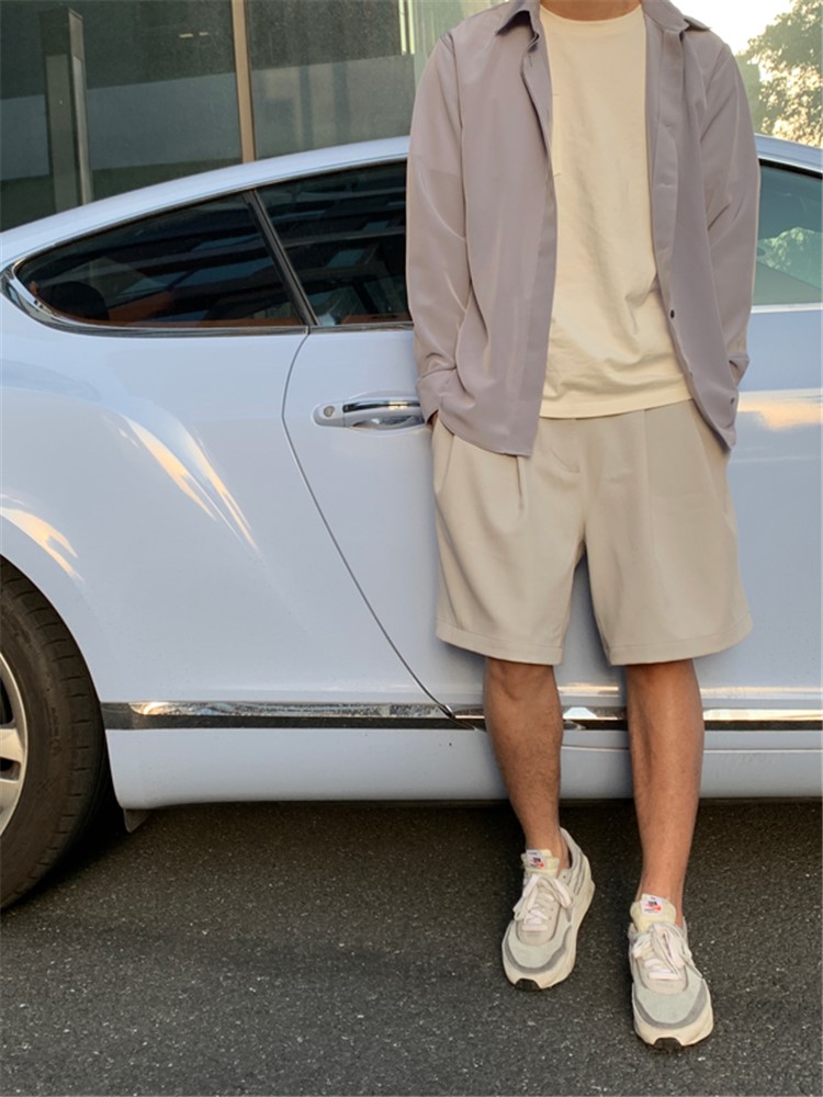 商务型男的上衣穿出精英感,高腰短裤,拉长腿部比例。