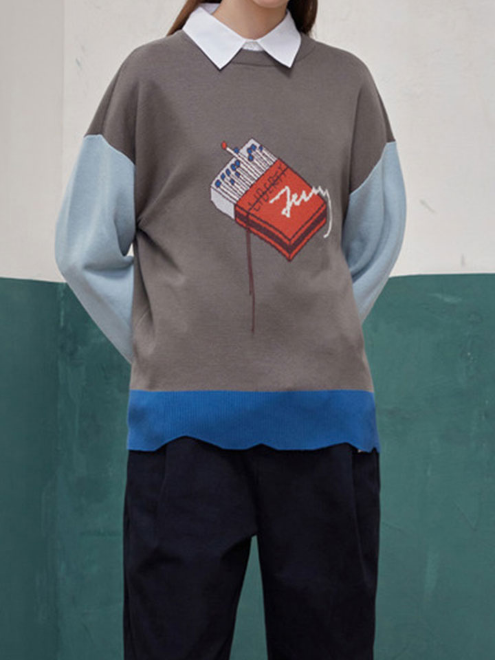 套头毛衣就是永恒的经典,宽松落肩版型,适合绝大部分身材。拼接设计加入撞色插画,简约中彰显时尚元素的潮流感。