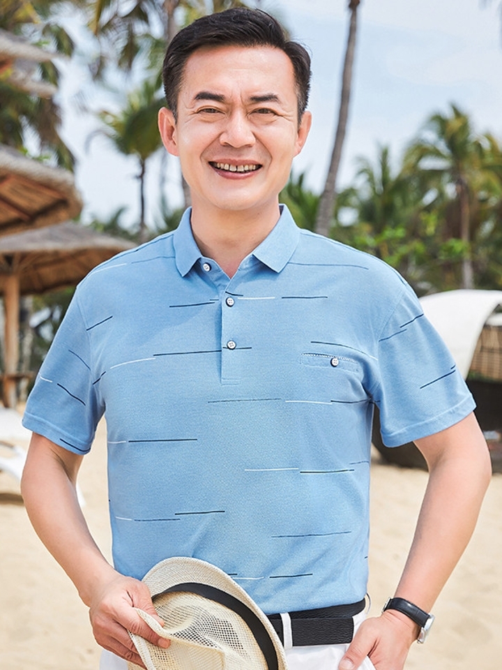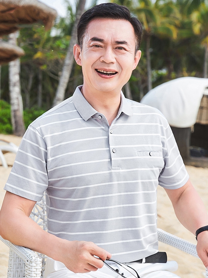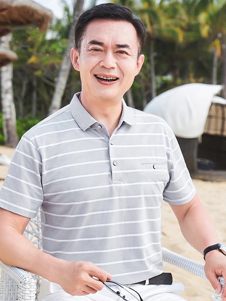 这是一款具有极佳的减龄效果同时又不失利落稳重的Polo衫,采用典雅条纹,活力范儿十足。
