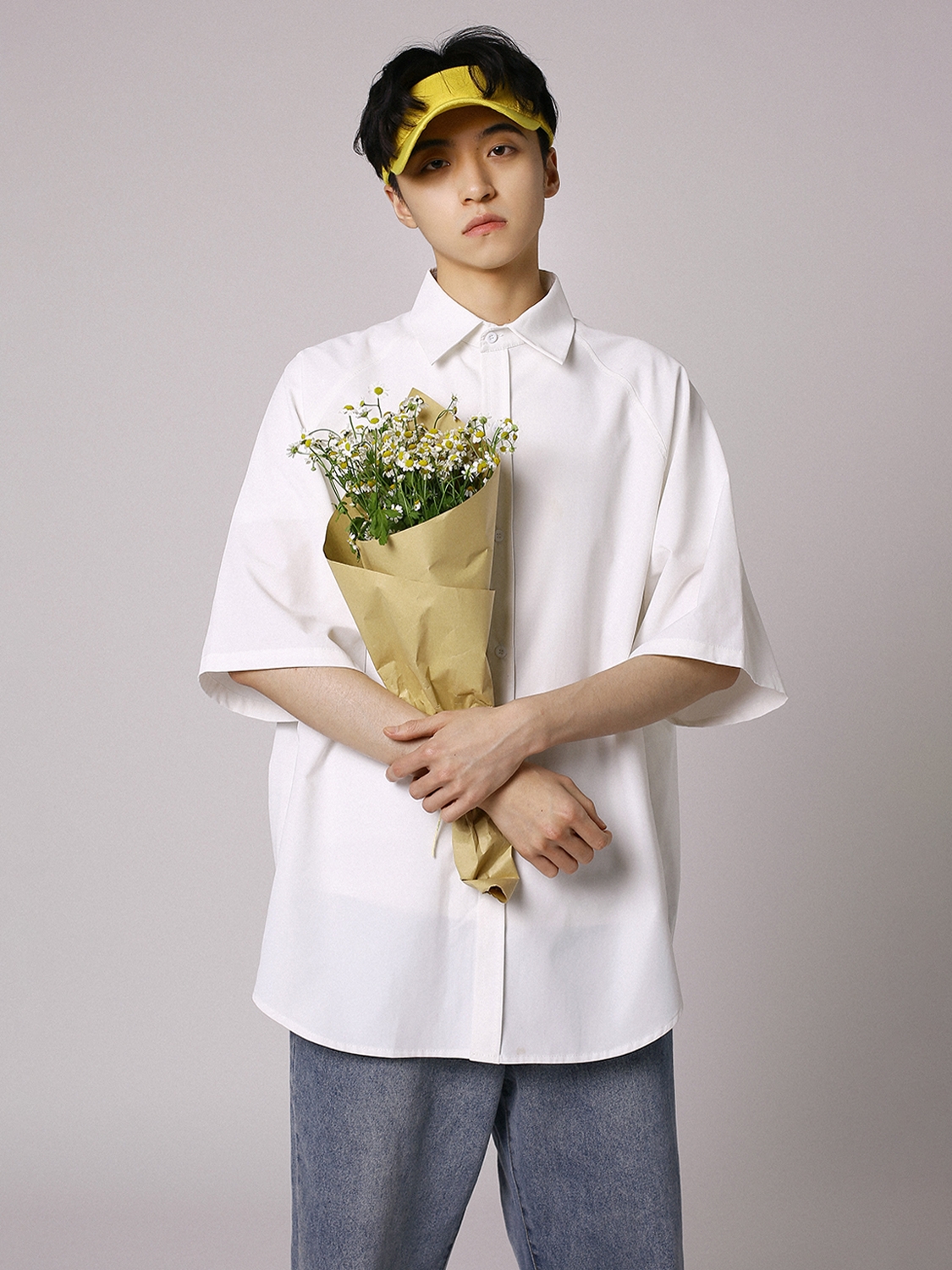 这款衬衫在出行时在下身搭配一条简洁的宽松牛仔裤,颇有一番个性非凡的潮流玩趣风味。