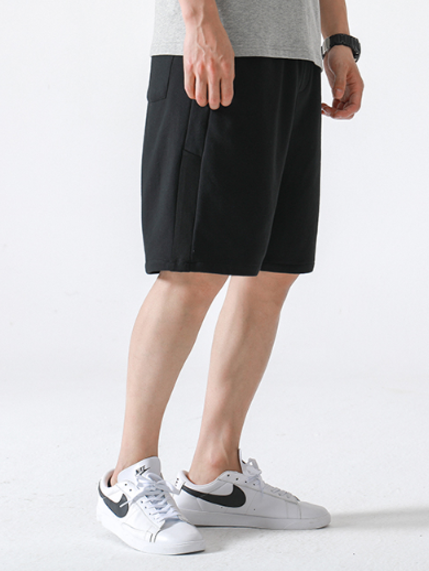 这条运动短裤选用棉质的针织面料,具有一定弹性,穿着亲肤舒适、吸汗透气。