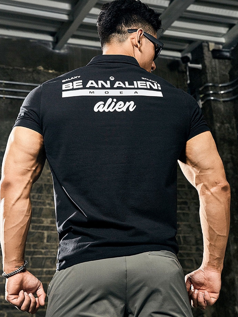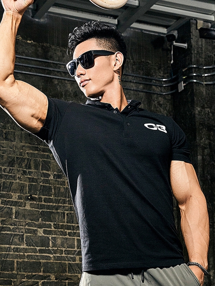 英伦范的polo衫,低调内敛的黑色为主,展现出男性沉稳大气的一面。胸前的白色刺绣点缀,缓解了纯色的沉闷感。