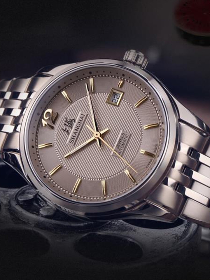 石英自动机械手表,采用金刚蓝宝石表镜,奢华镶钻刻度,防刮耐磨;精钢钢带,原装进口带日历显示全自动机械机芯,走时精准持久,性能稳定。