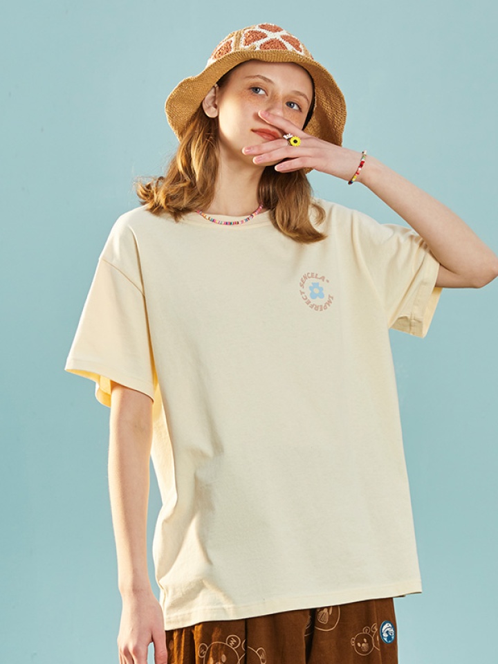 这款t恤是简约的风格,宽松的版型,时尚百搭,胸前的字母印花,很有个性,搭配牛仔裤或者短裤都很好看。
