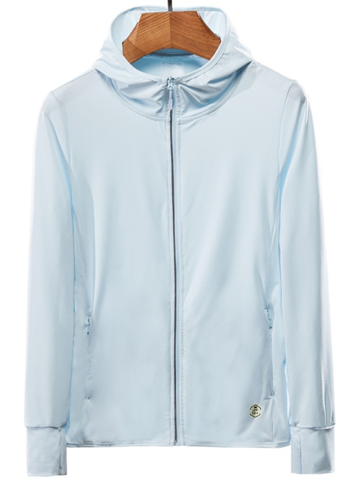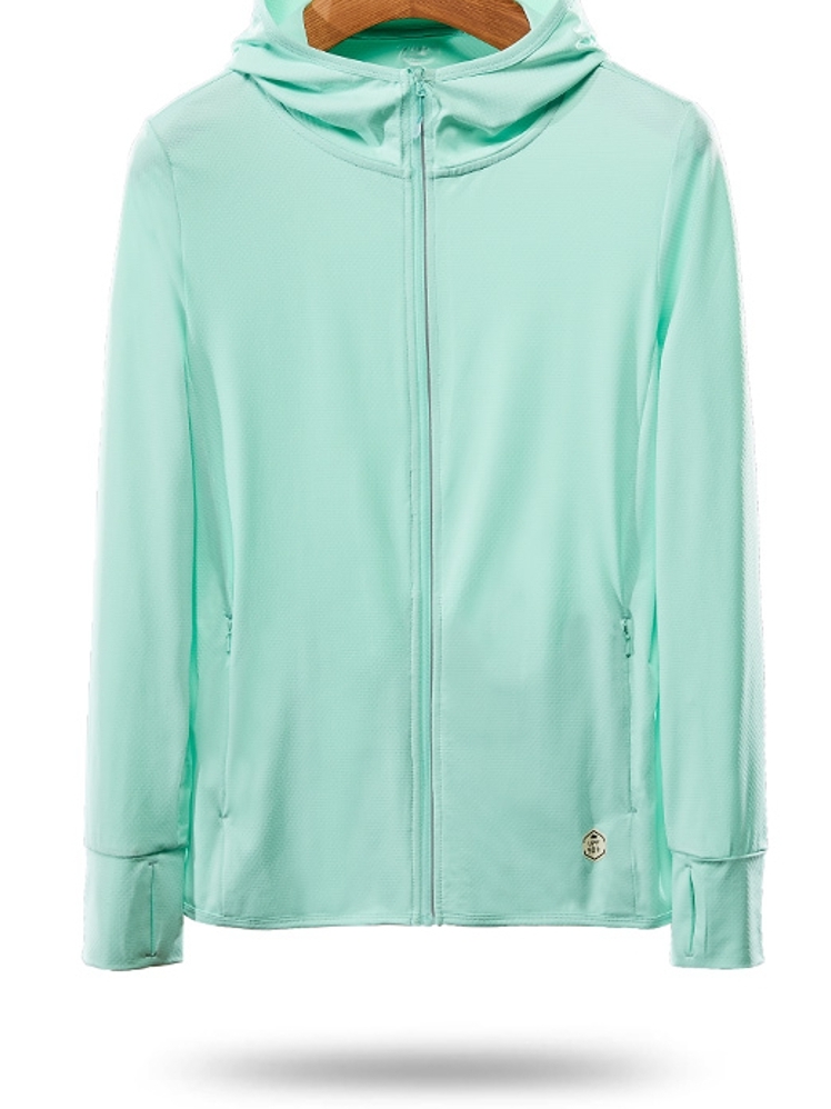 探路者的这款防晒衣TIEF SKIN UPF40+,纬弹平纹面料,抗撕破,轻微机械弹力,超轻防泼水;帽口、下摆配有卡扣,可调节围度超方便。