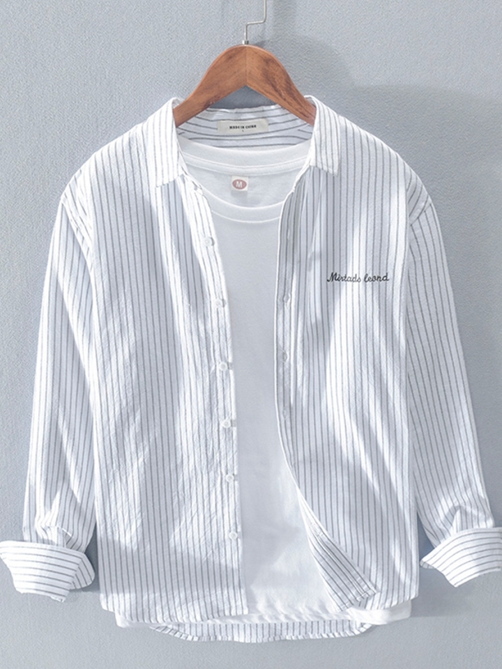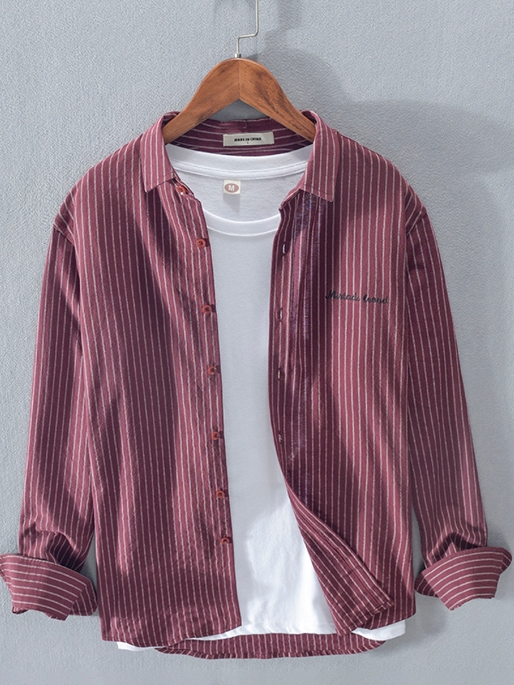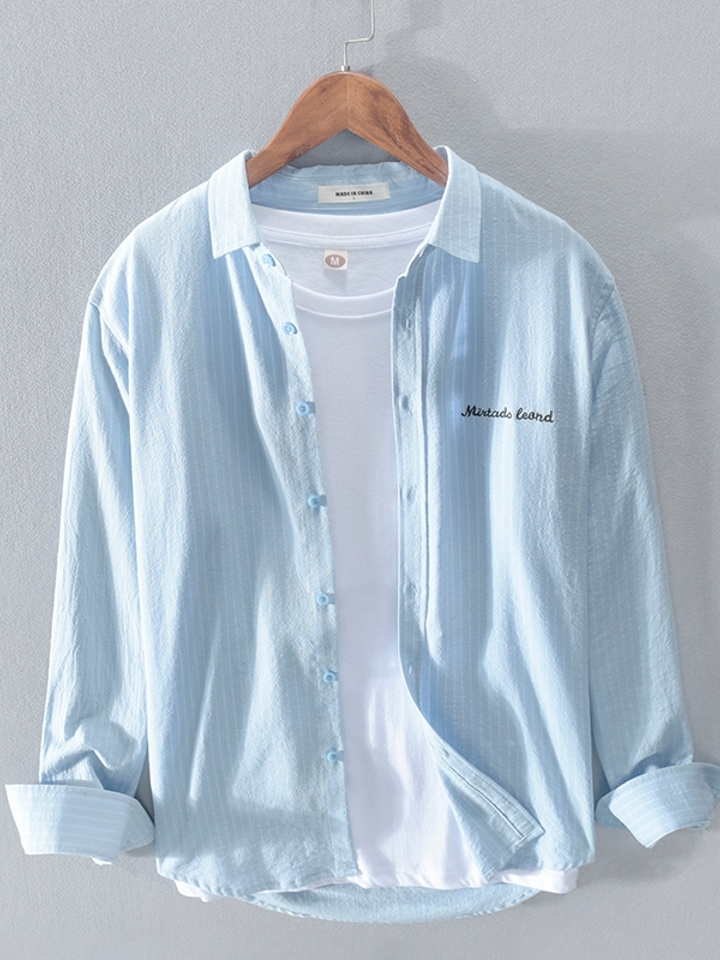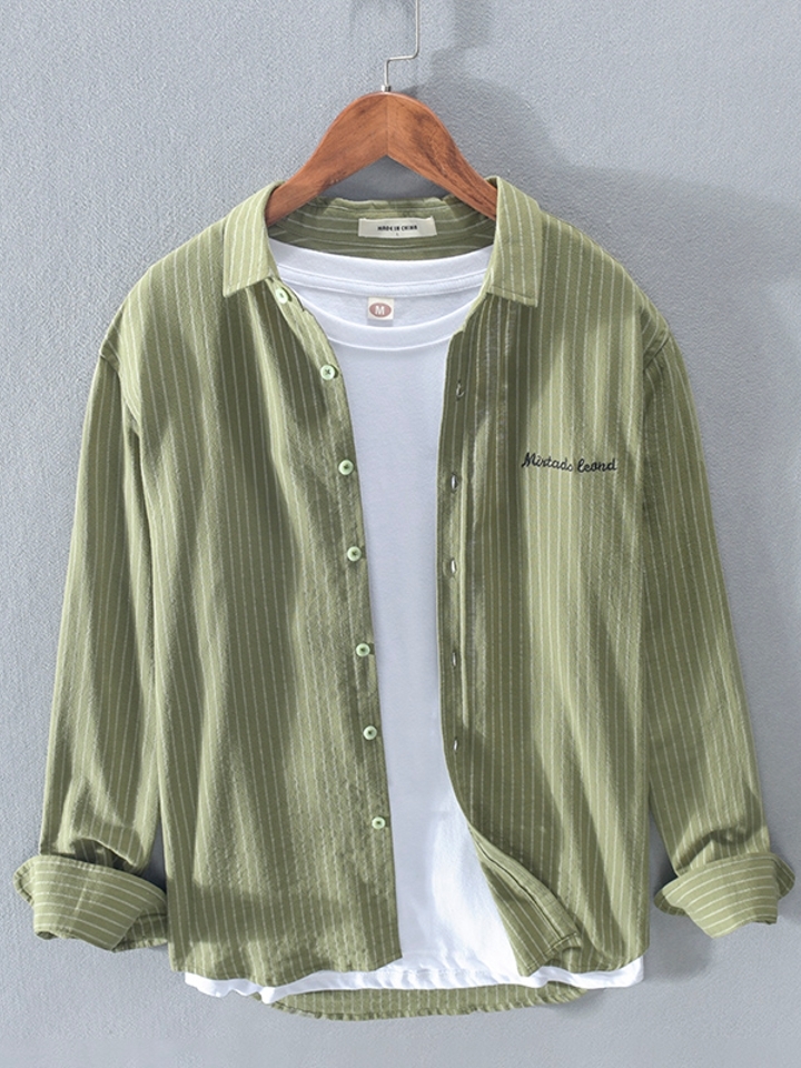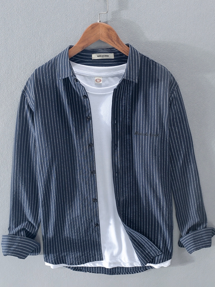 简约休闲的一款男士长袖衬衫,简约的条纹设计,搭配经典的宽松版型,穿出儒雅时尚感。