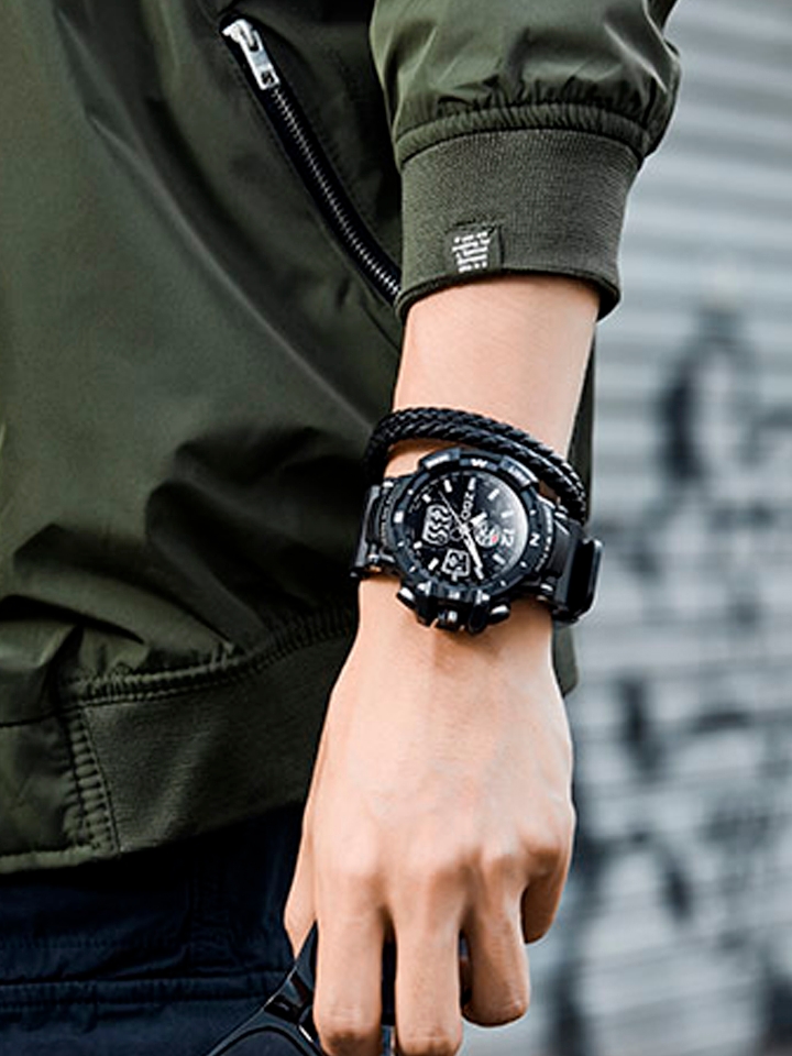 这是一款学生表炫酷青少年闹钟电子表,多功能户外运动手表。采用了立体面设计,搭配时尚大方的镂空指针,新潮的外观,led屏幕显示,具有闹钟、日历、计时等功能,带有背光灯,在晚上使用也非常方便,具有防水防冻功能。