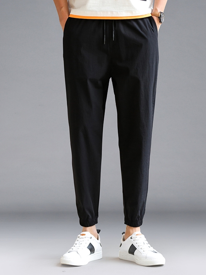 松紧腰结合撞色的抽绳设计,可自由调节腰围,不挑身材穿着。选用优质面料,柔软舒适,吸湿性、透气性佳。裤脚束脚收口