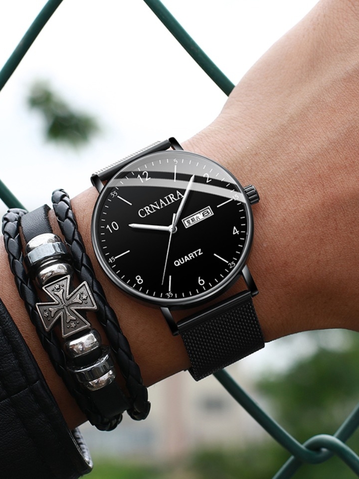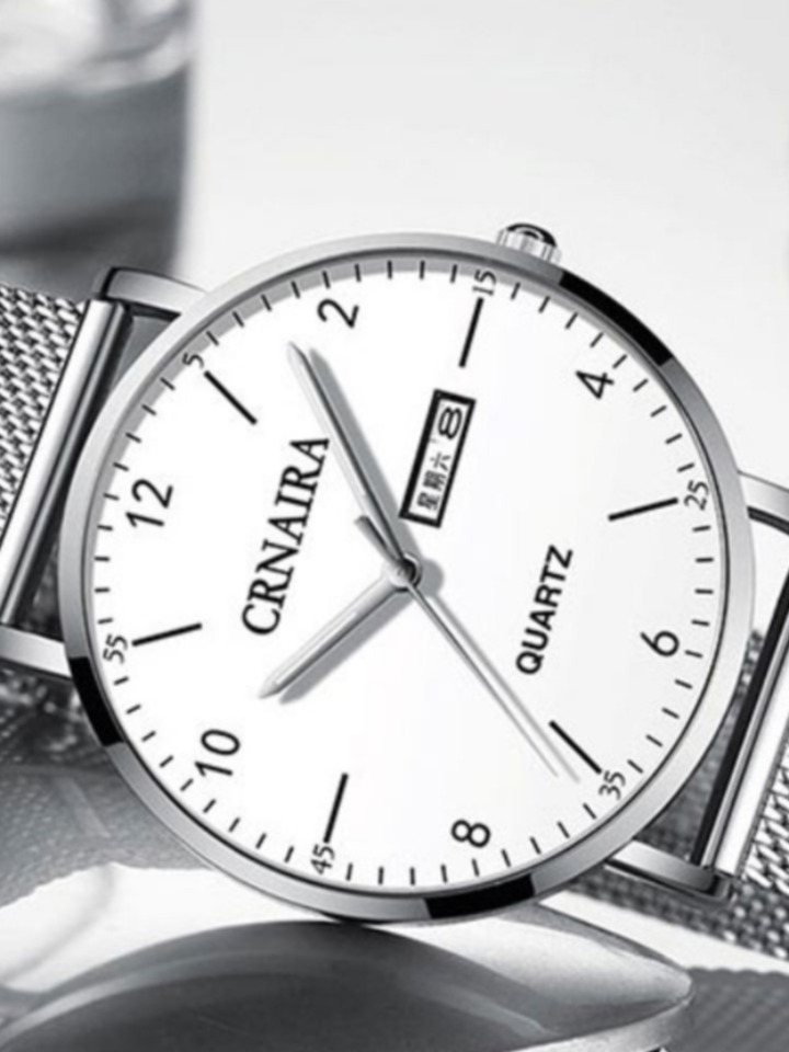 矿物强化玻璃镜面,不易刮花 进口日本石英机芯,走势准,静音3ATM防水等级,游泳也能佩戴