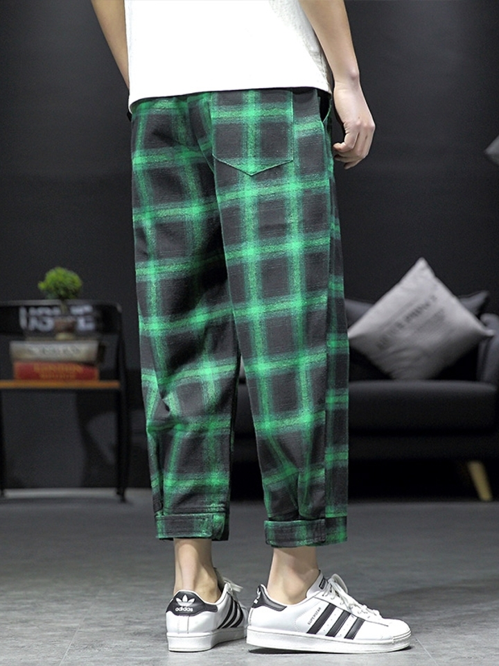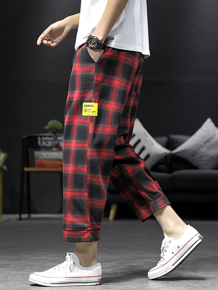 宽松的版型,可以遮挡腿部的肉肉,而且可以很好的修饰腿型。红黑格子的纹案,复古时髦,特别有范,而且带有今年大热的独特大圆环的设计,可以打造出摩登的造型,休闲又时尚,很好穿搭。