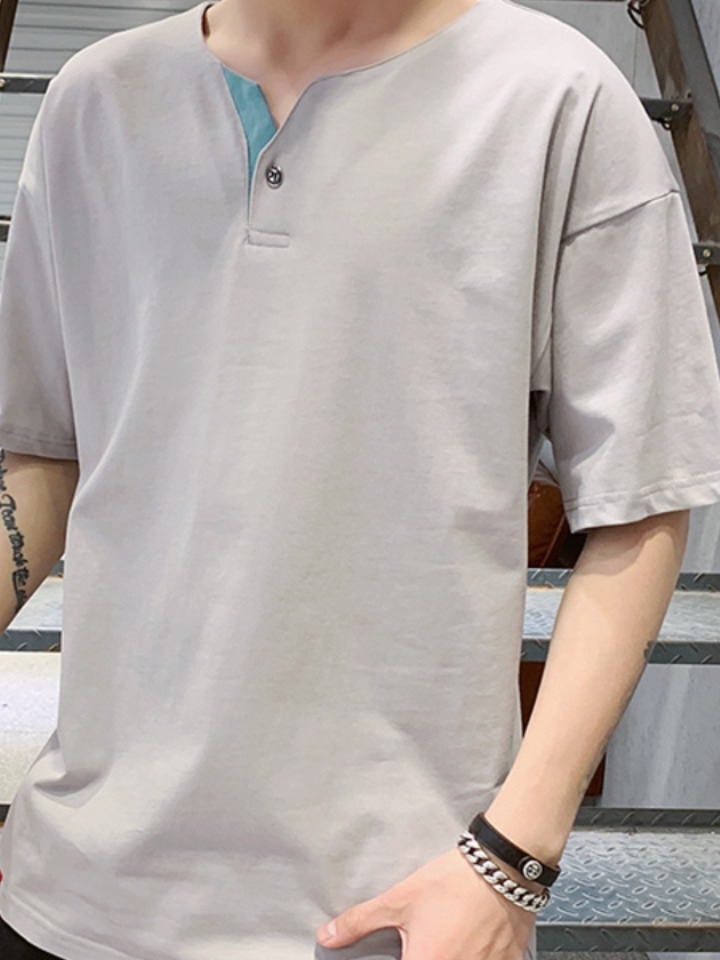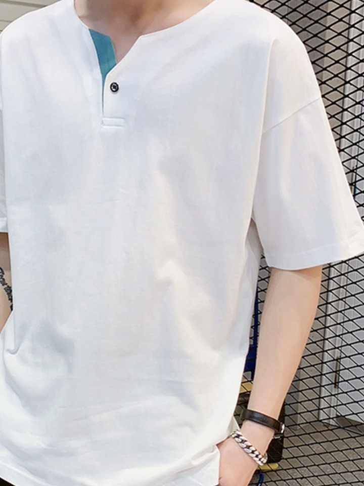 男士短袖t恤男夏季纯色宽松半袖体恤纯棉圆领简约上衣打底衫男装