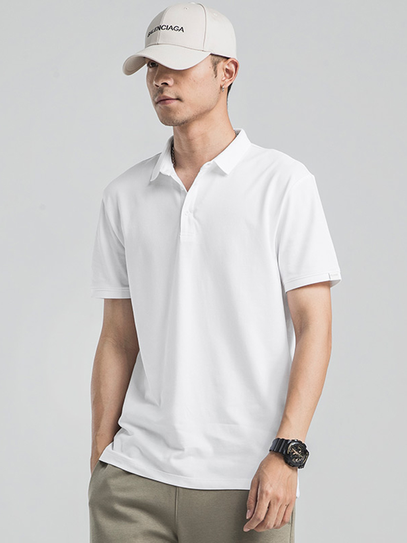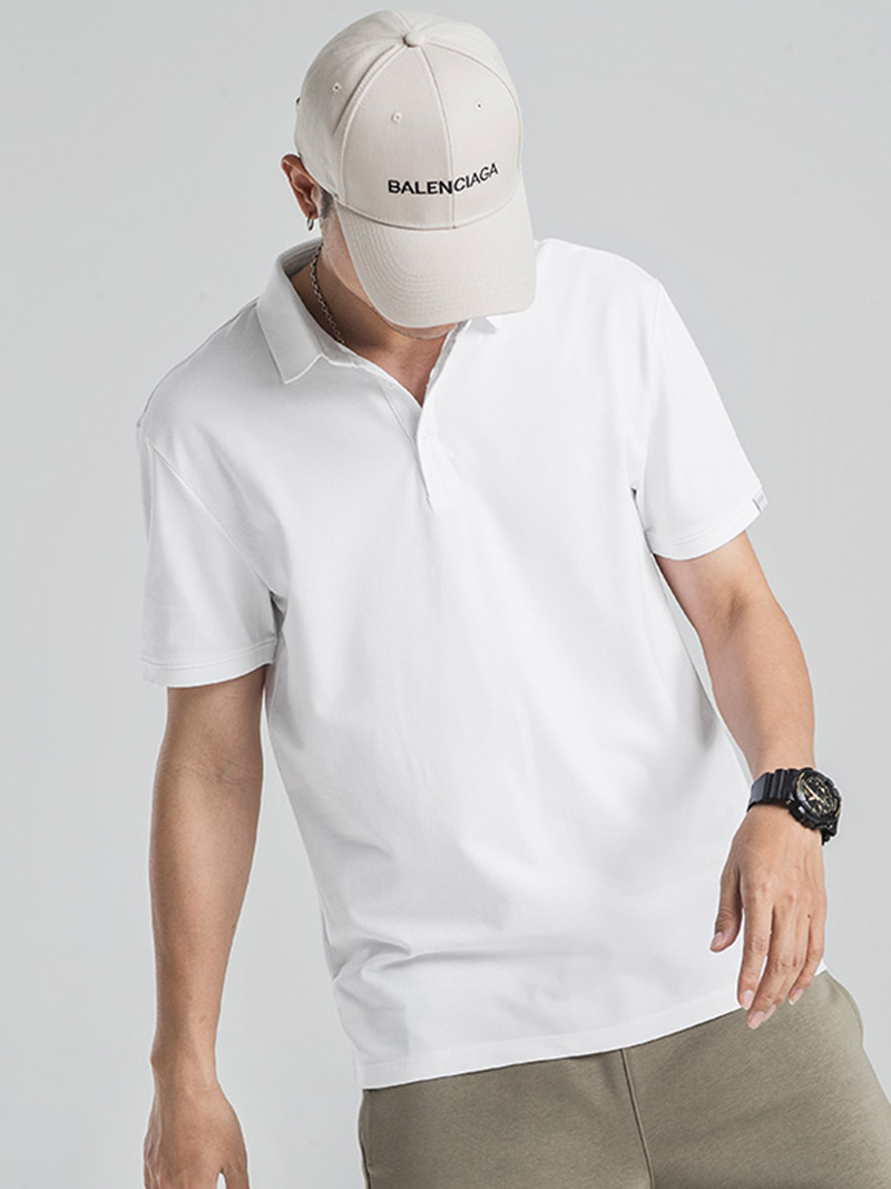 简洁的小翻领设计,让这款T恤衫穿着舒适又能够起到修饰脸型的效果。结合修身的版型设计,体现男士硬朗线条。