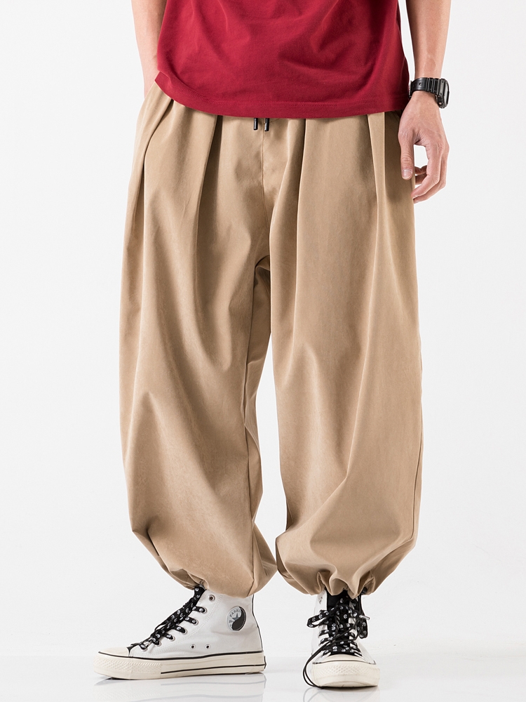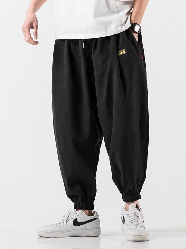 裤子是松紧腰的设计,穿脱非常方便,裤身是大方的版型剪裁,任何腿型都能轻松驾驭,裤子腰侧插袋处理,美观实用,裤脚是束脚的设计,让你穿着更显帅气。