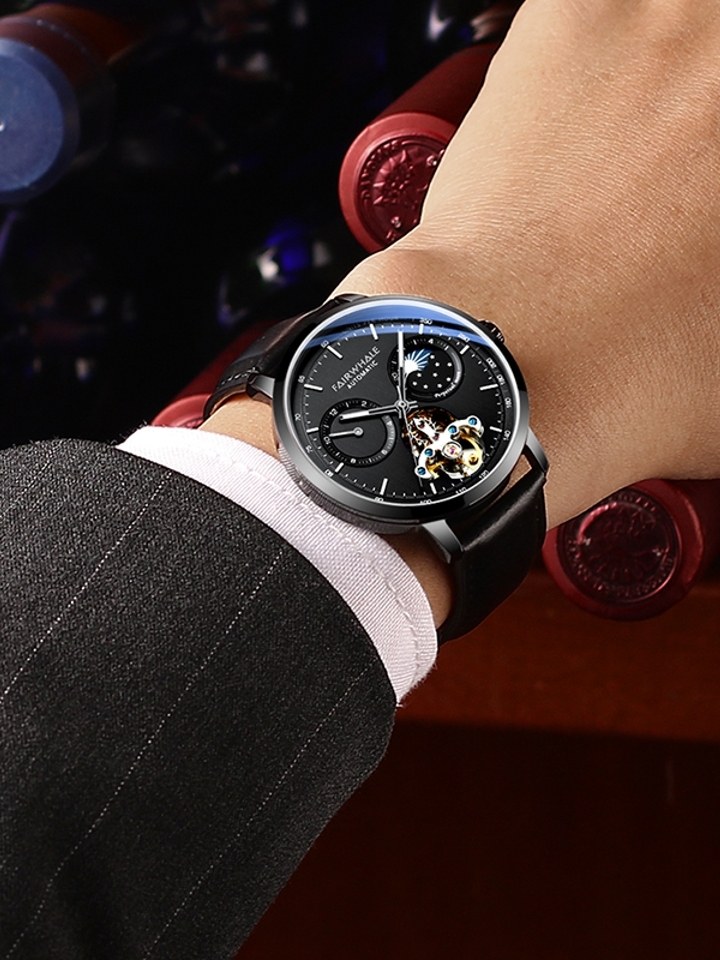 立体浮雕表盘大气,搭配时尚镂空飞轮,质感丰富新颖。实心精钢打造表壳,耐磨耐刮,光泽闪耀。帅气时尚,多功能实用。