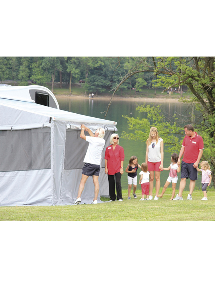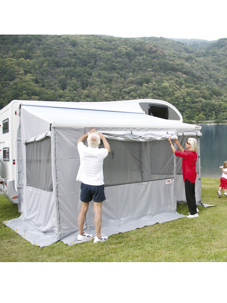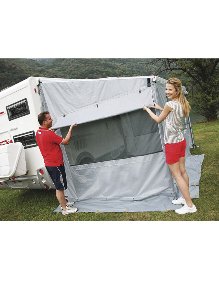 可以满足大部分房车使用需要的一款房车遮阳棚帐篷,帐篷的两侧拥有纱窗,通风透气并可以防止蚊虫的进入,出口可以灵活移动,很好的扩展房车的使用面积,非常适合一家子出门玩。