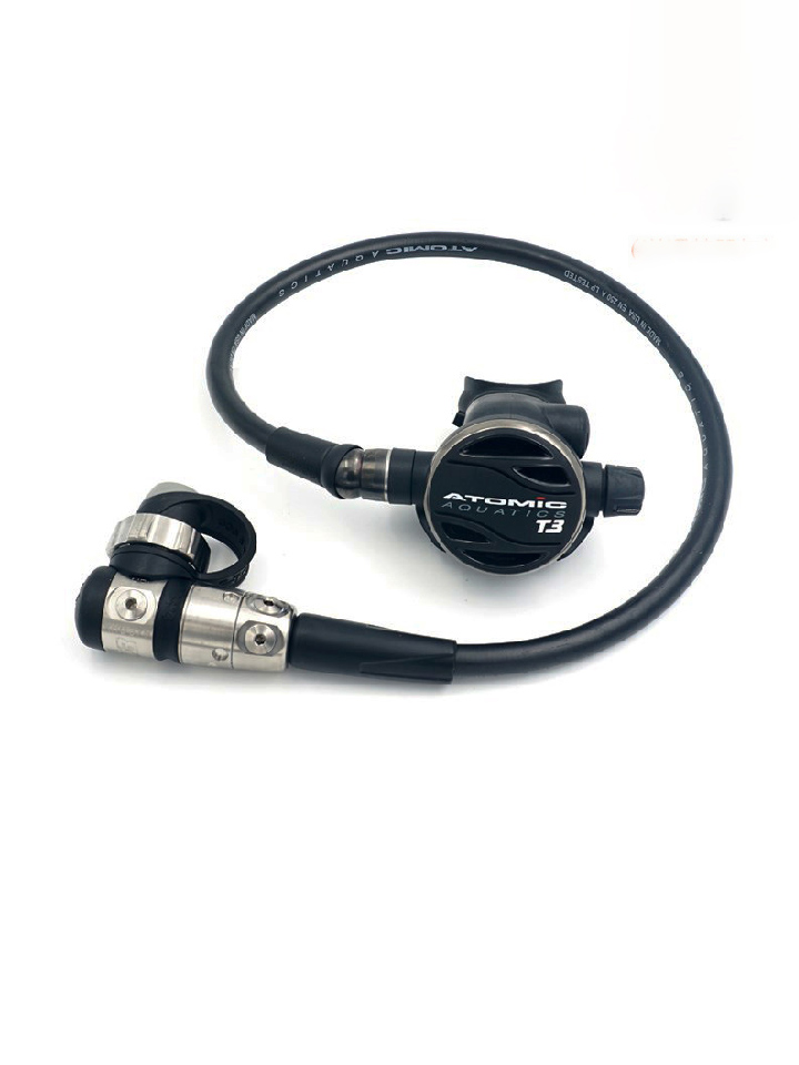 这款呼吸调节器材质为T3钛合金,颜色主要是黑色,它具有出色稳定的工作性能,加之其材质轻质可谓是旅游潜水的好选择。一级头的组件采用实心钛合金精密加工而成,可以达到轻便且耐腐蚀的效果。它的优秀的防冻密封工艺不仅可以保护一级头还可以防止淤泥和沙子的污染。