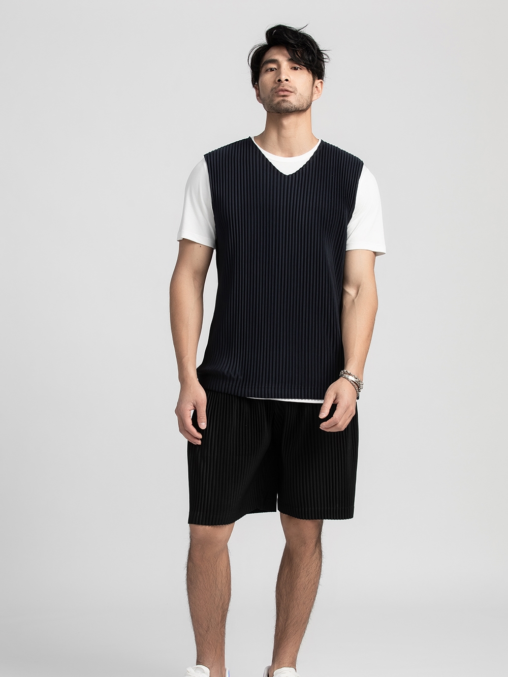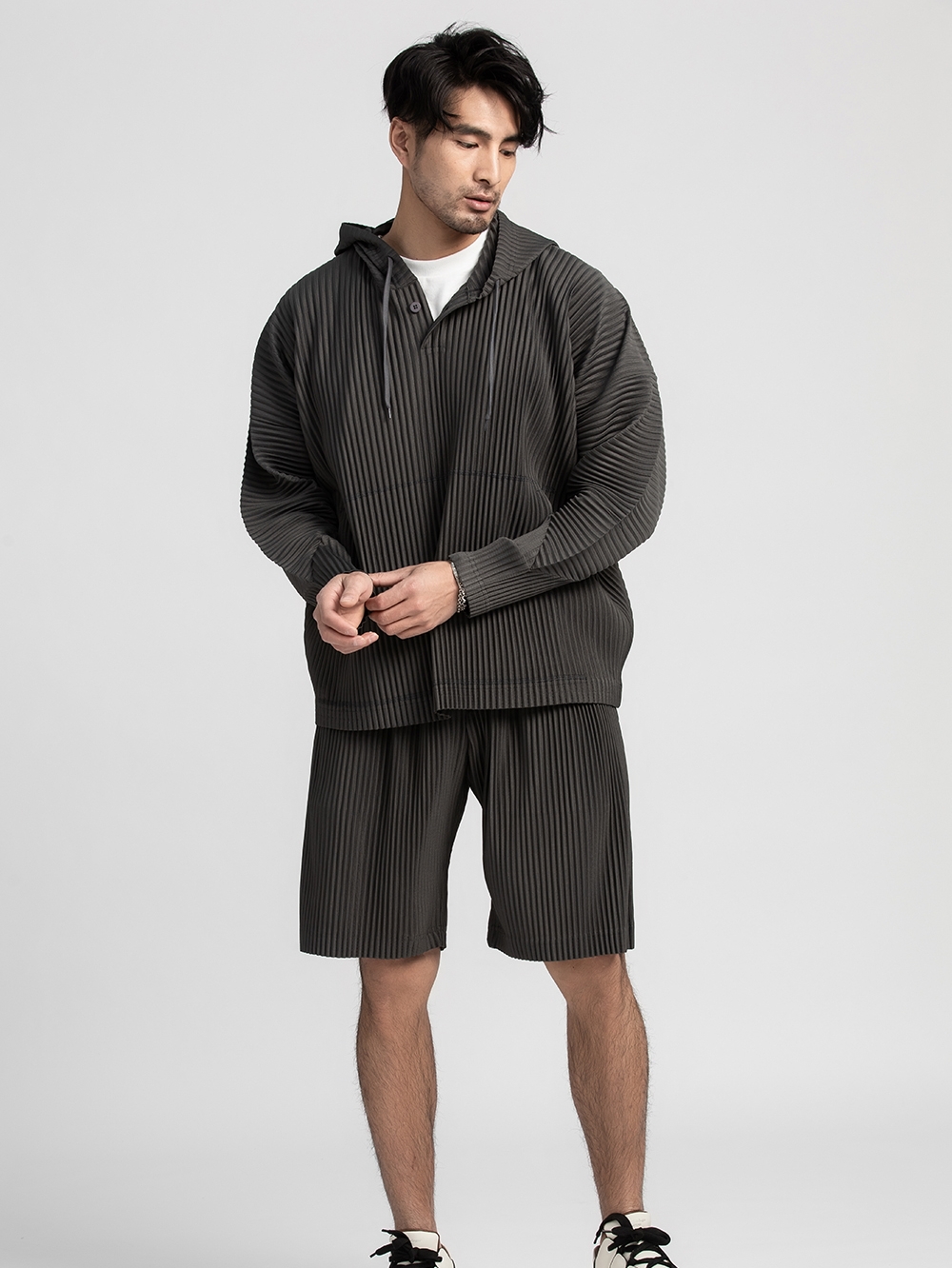宽松舒适运动款短裤,精梳棉的材质,吸湿排汗,非常适合夏季运动穿着,整体立体拼接剪裁,上身挺括有型,彰显男士儒雅魅力,简约斜插袋设计,增加时尚感,实用性强。
