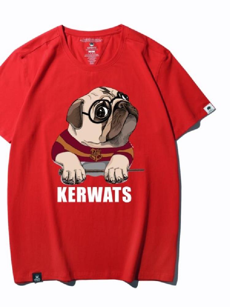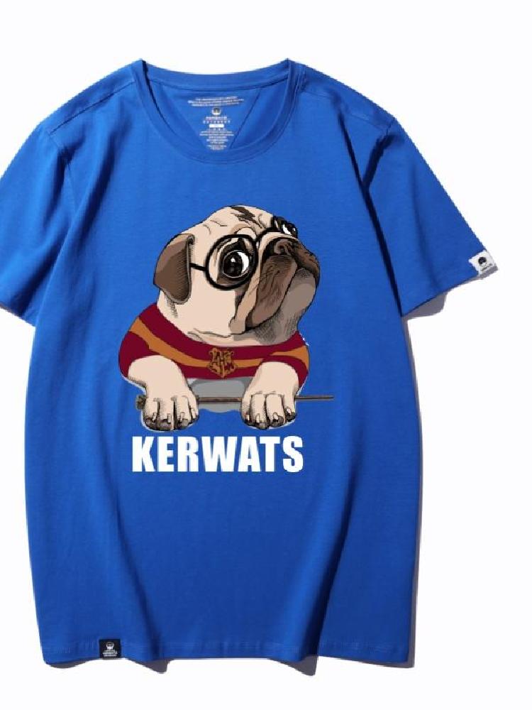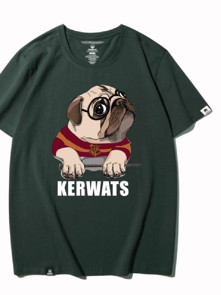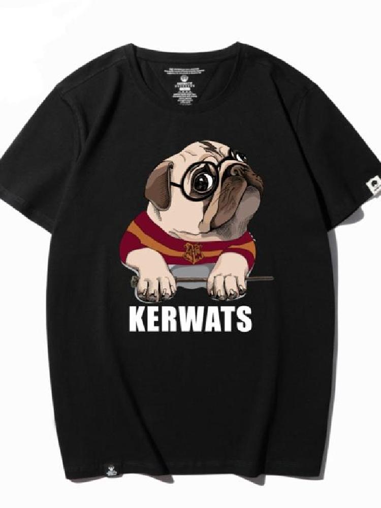 小狗印花圆领修身短袖t恤 ~手感很好,做工精致,设计简约,前面的小狗印花图案非常独特,穿着很帅气