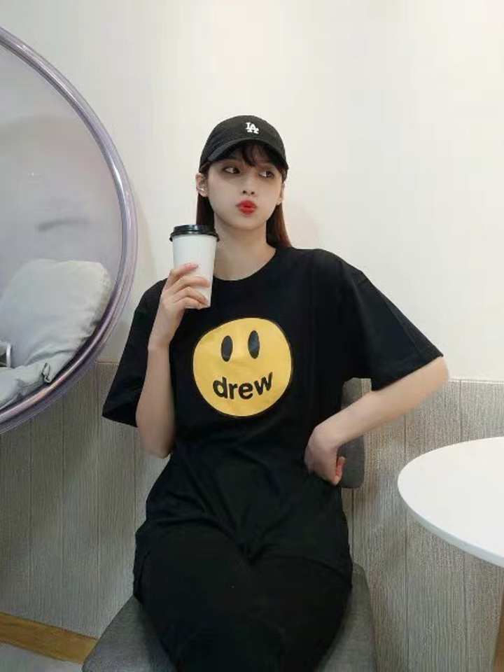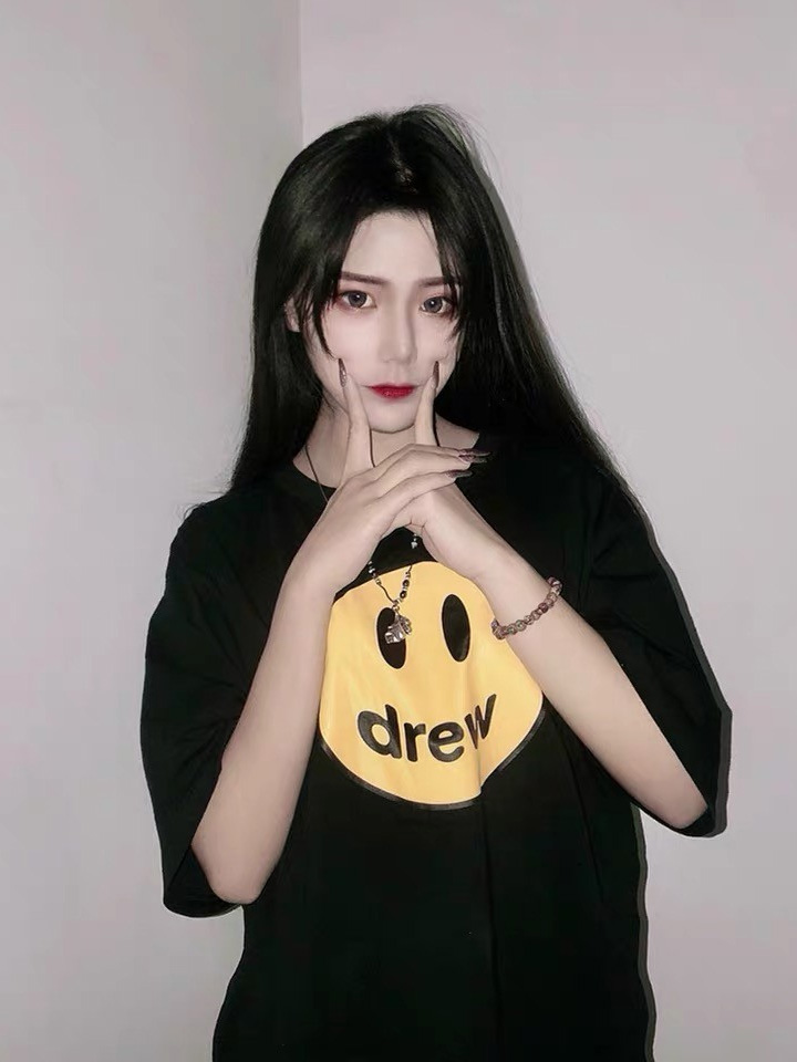 宽松的落肩膀五分袖T恤,特别有日系文艺风的版型,衣身的笑脸大印花,有时尚潮流的味道,上身彰显型男味道。