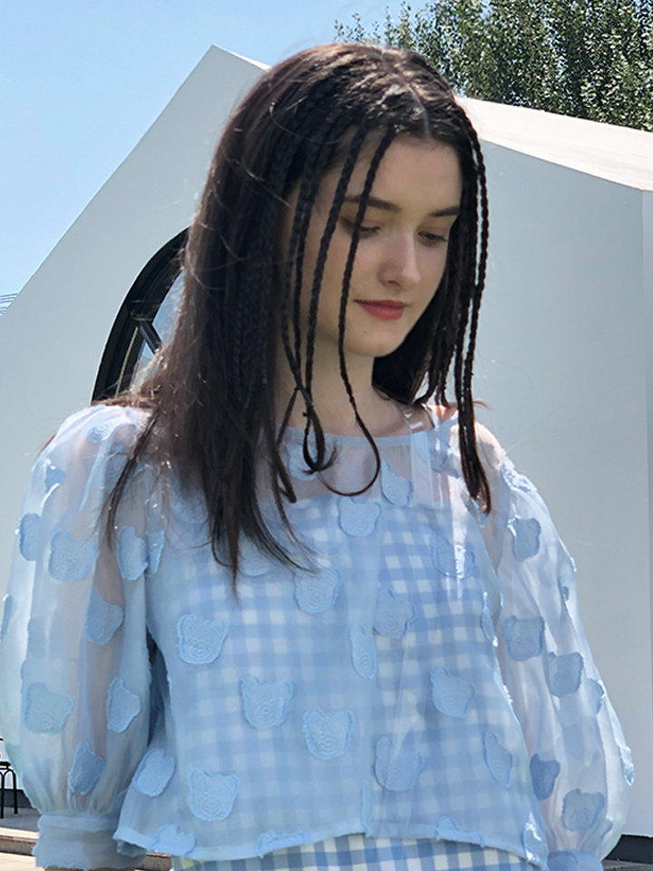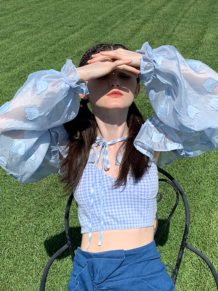 运用蓝色的浪漫渲染,营造出满满的甜蜜少女气息。采用细致的格纹装饰,打造醒目的效果。