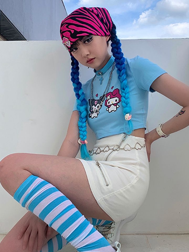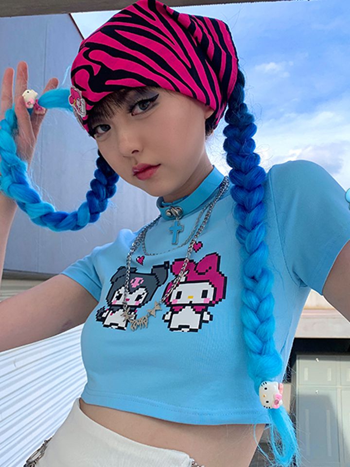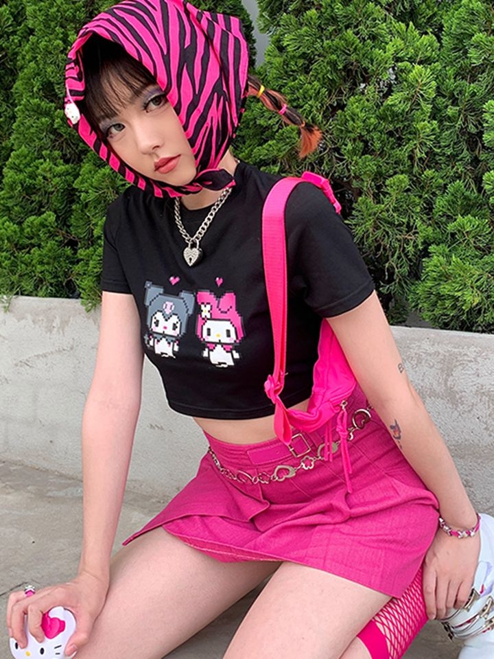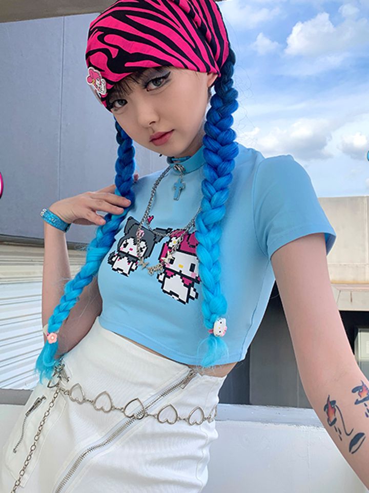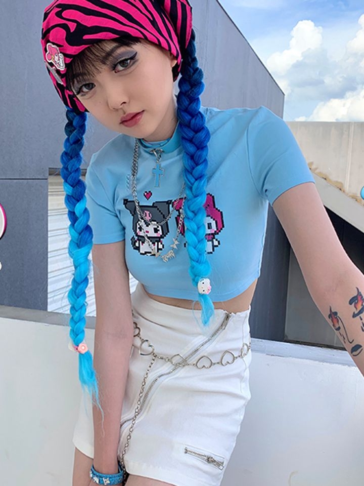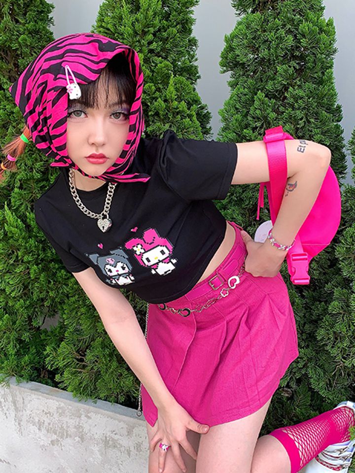 短款的露脐T恤会露出一截肚子,彰显你小蛮腰的时候到了,精致的印花充满了时尚的个性,宽松的短款版型,展现性感身材。