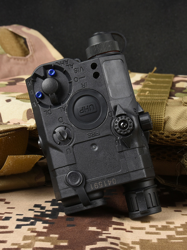 WADSN品牌所出品的一款红外线瞄准器,整体展示出繁复巧妙的构造感,表面上设有着多个旋钮,可以自由地进行数据的调控。旋钮的表面富有着坑条的纹理,可以避免脱手的情况。