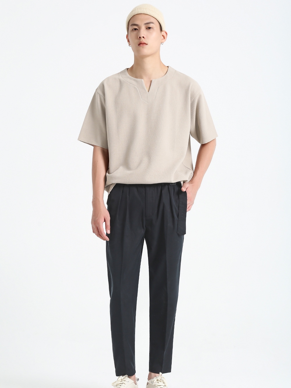 下摆开叉设计摆脱了普通版型的呆滞死板,增加视觉错落感,新颖又时尚。