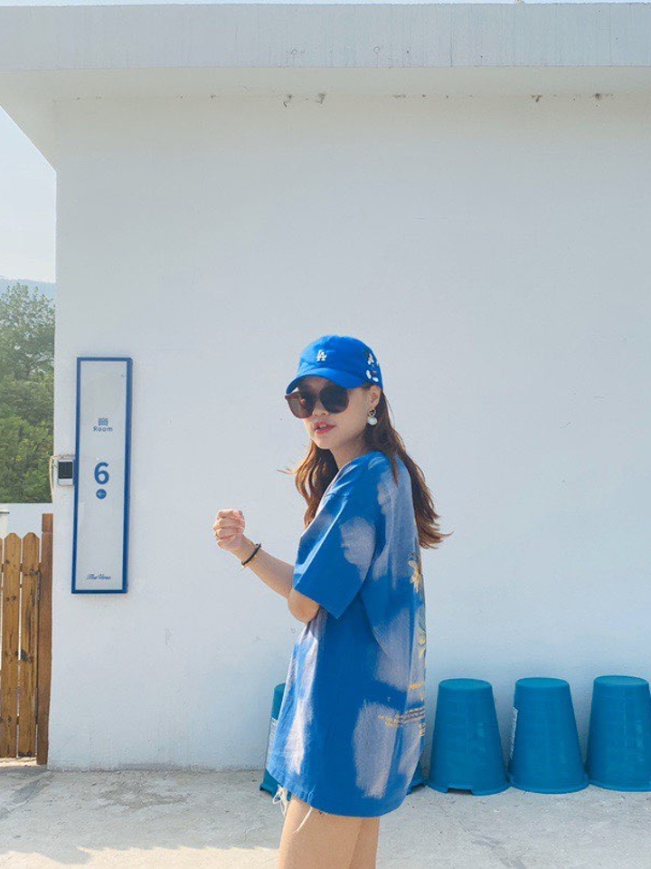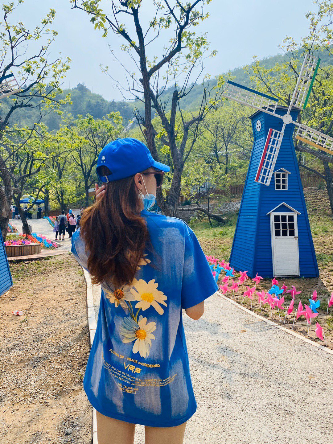 将清新的蓝色作为底色,精致的小雏菊印花顺序点缀在衣身中,两者的结合营造出清丽脱俗的少女气质。浪漫的荷叶花边装饰在袖口,将女性的柔美表现出色。