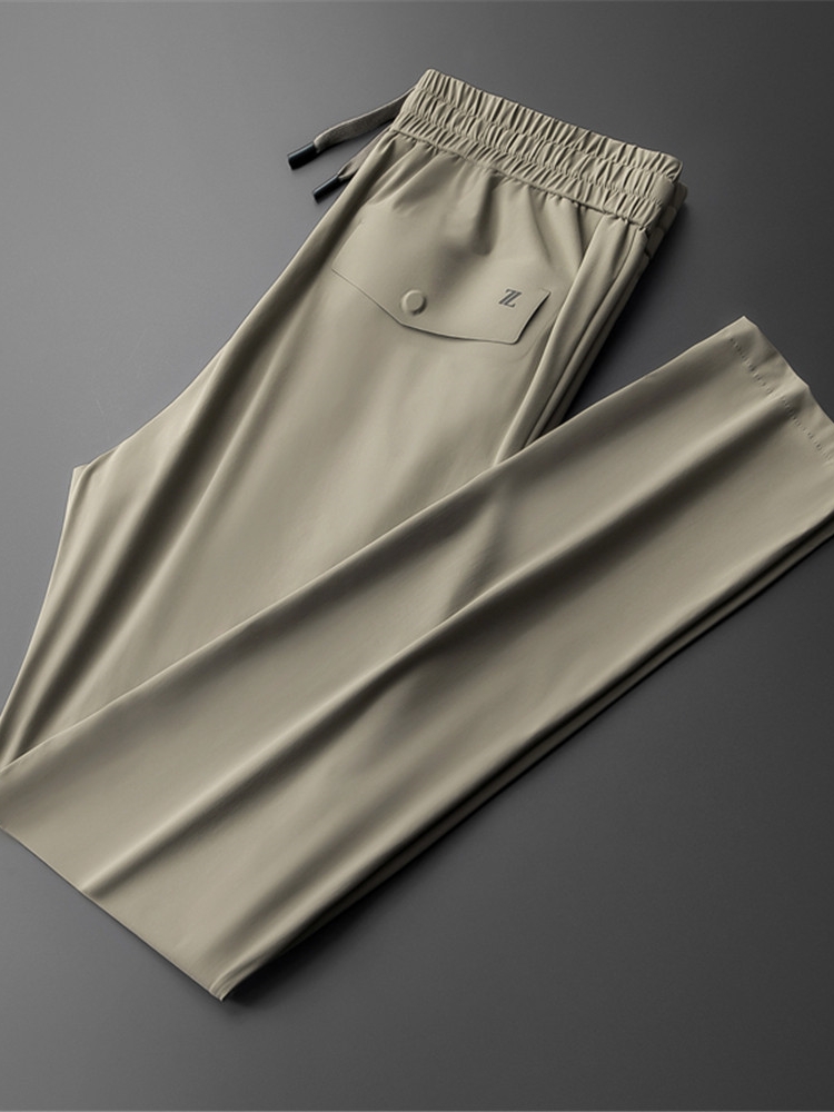 裤子采用轻薄透气的丝绵冰丝材质,柔软轻盈,在闷热的夏天穿出一丝清凉感。上宽下窄的小脚裤型,修饰腿部线条的同时,干练不显拖沓,穿出一丝休闲出街。