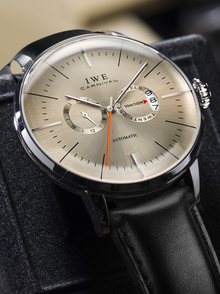 手表选用的矿物强化玻璃镜面,质地较为坚固,在一定高度内摔落时,仍可保持镜面的完整。蝴蝶双按表扣设计,脱戴起来方便又省力。手表内部的自动机械机芯,不需使用电池驱动,只需不定时地用手旋转发条,即可保持正常工作,可以说是很实用了。