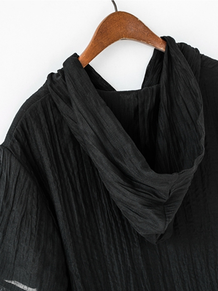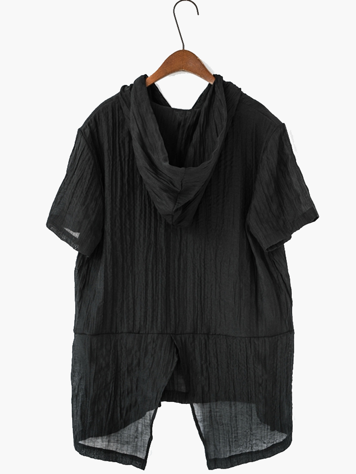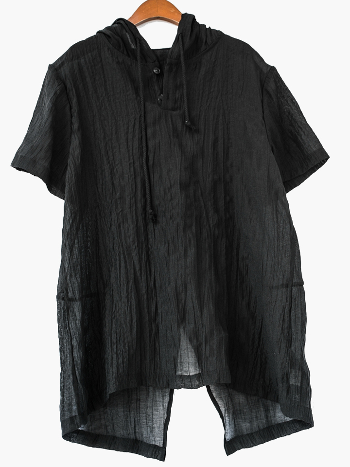 这款连帽短袖T恤,高级定制天丝麻面料,自然皱褶,显瘦有质感,上身舒适透气,后下摆开叉造型,时尚帅气。