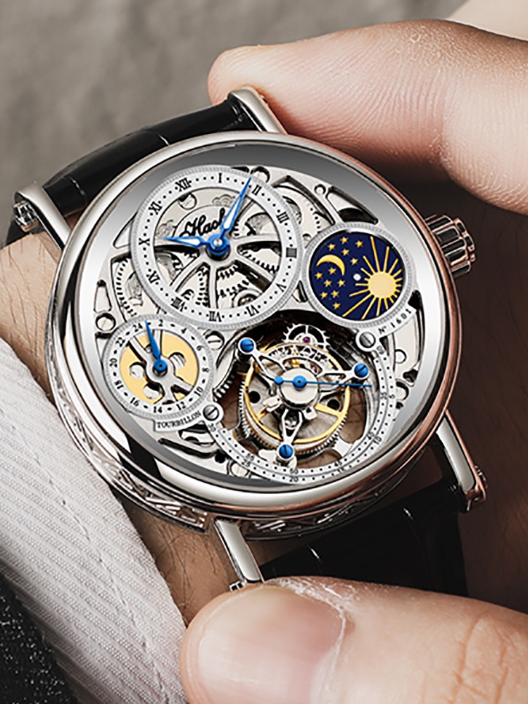 采用的是优质的合成蓝宝石表镜,硬度非常的高,并且具有很好的耐磨性,长时间使用不会刮花的镜片,让你的手表直都很美观。大三针指示,清晰的分钟指示让你对时间更容易把控。
