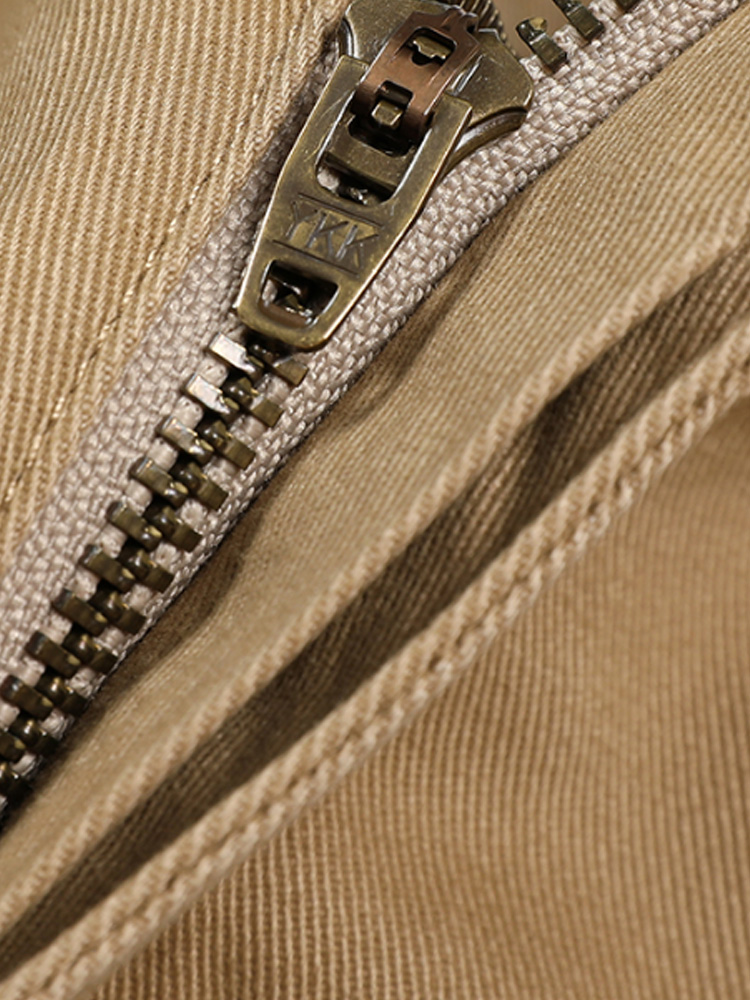 精选了优质的纯棉材质打造,带来了柔软舒适的质感表现,吸湿透气性好,穿着不会有闷热不适感。而金属材质拉链,使用起来顺滑不卡链。