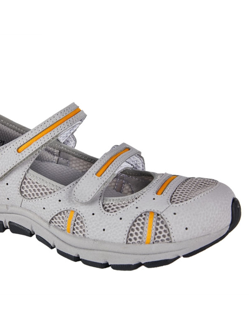 加宽包头的设计,细致贴心,为脚部营造了足够的活动空间,融入鞋面透气孔的设计,清爽不闷热,满足穿着的舒适体验,配上个性撞色拼接的点缀,潮流前卫,提升整体造型的时尚格调。